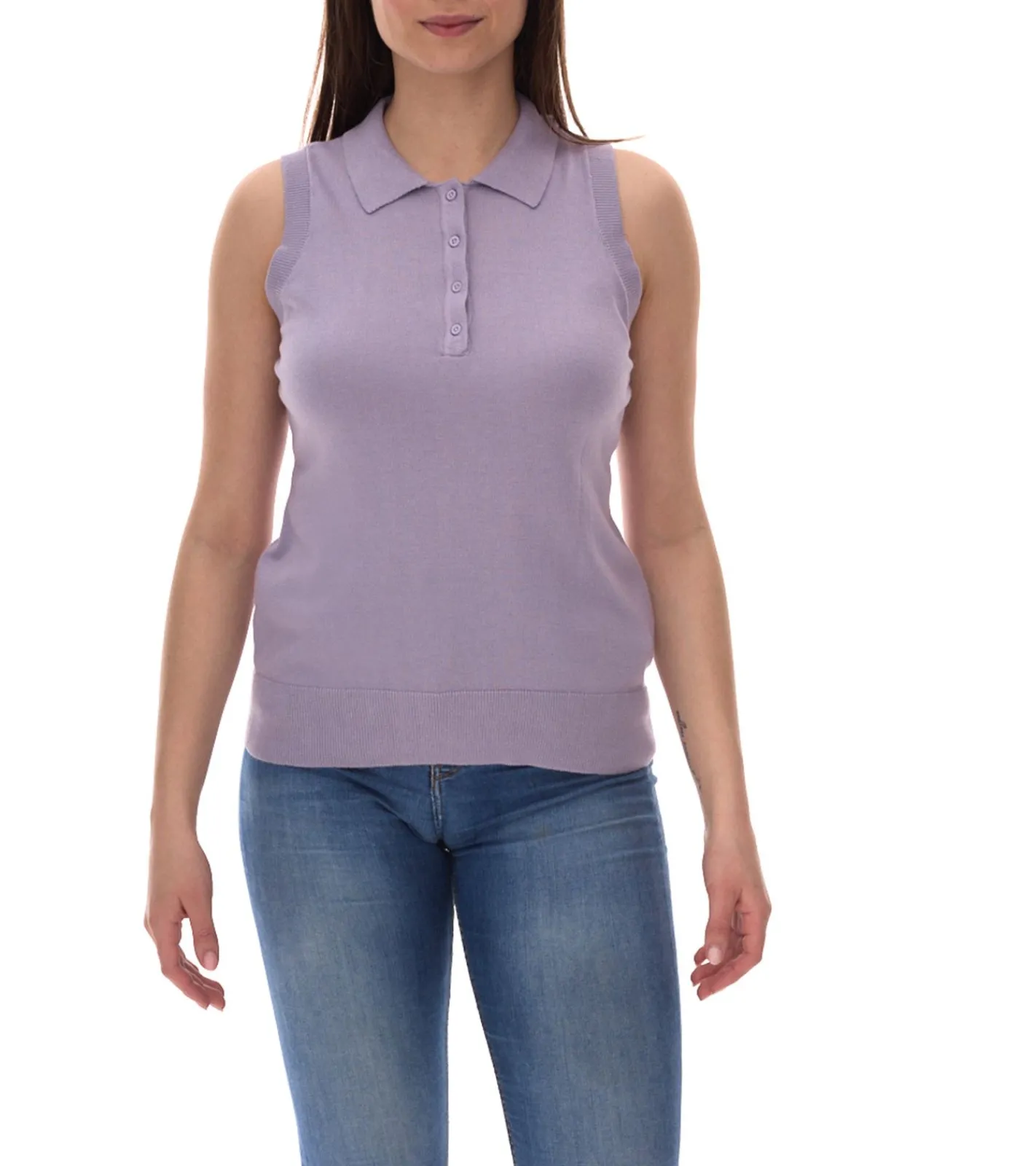AjC Damen Tank Top modisches Polo-Shirt mit Knopfleiste Sommer-Shirt 30237620 Lila