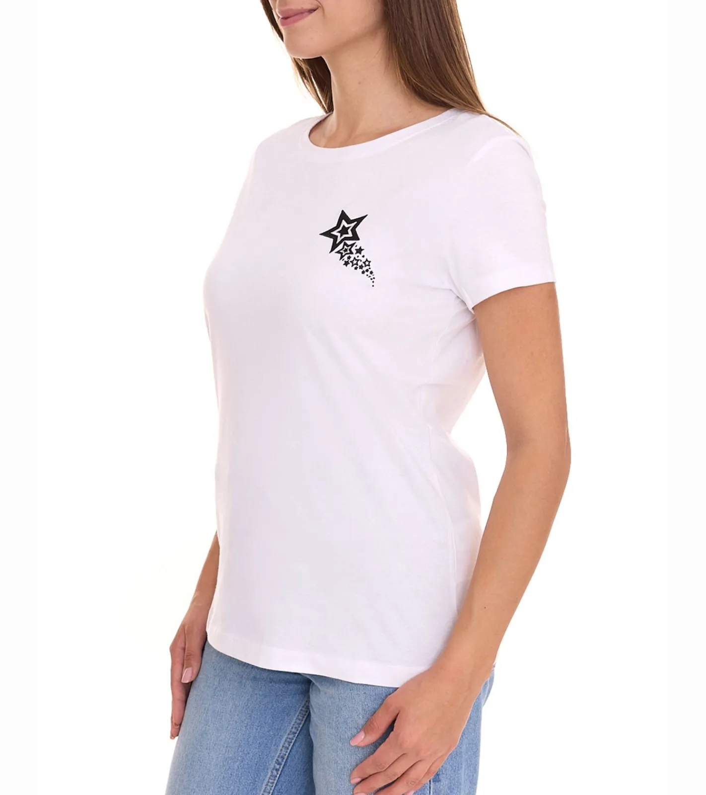 AjC T-Shirt Baumwoll-Shirt mit Sternen-Print Rundhals-Shirt T-Shirt 37896048 Weiß