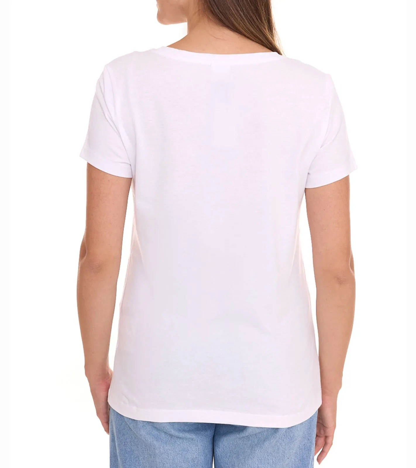 - Rundhalsausschnitt und kurze Ärmel