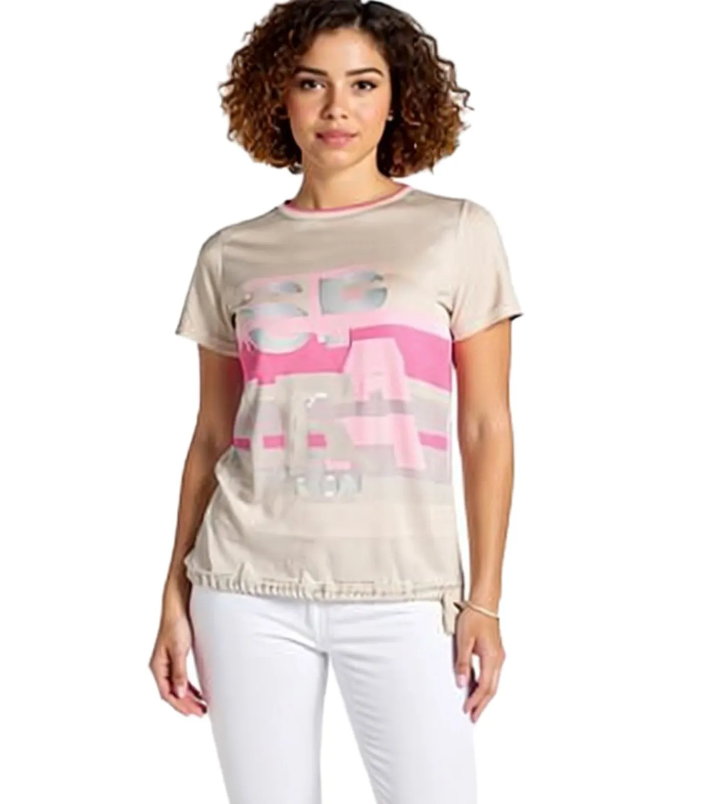 BOYSEN´S Damen Blusen-Shirt zeitloses Kurzarm-Shirt mit INSPIRATION Schriftzug 37325047 Beige/Pink/Grau