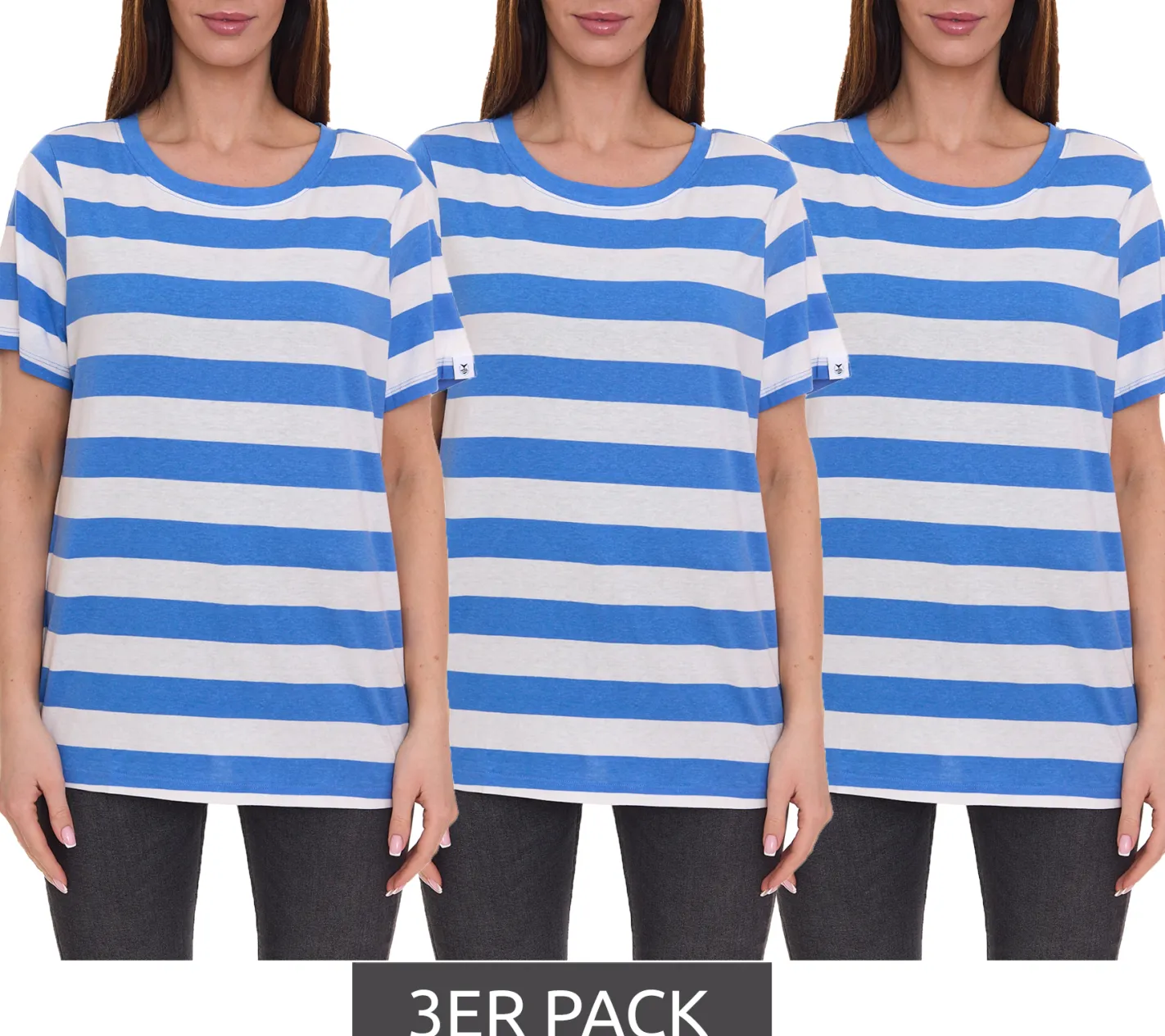 3er Pack DELMAO Damen T-Shirt gestreiftes Rundhals-Shirt 63058126 Blau/Weiß