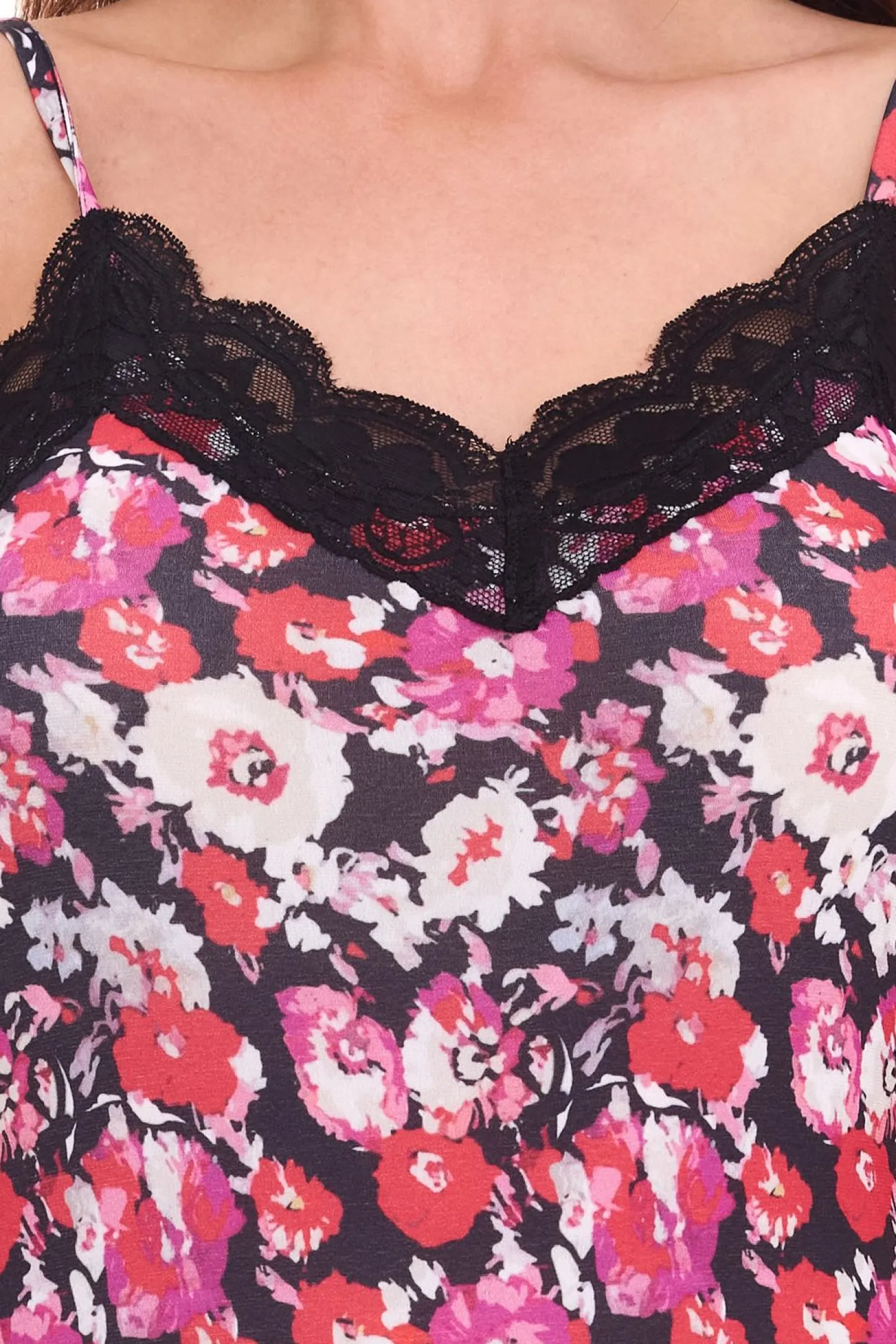 melrose Damen Top stylisches Sommer-Shirt mit Allover Blumen-Muster 91032254 Rot/Schwarz