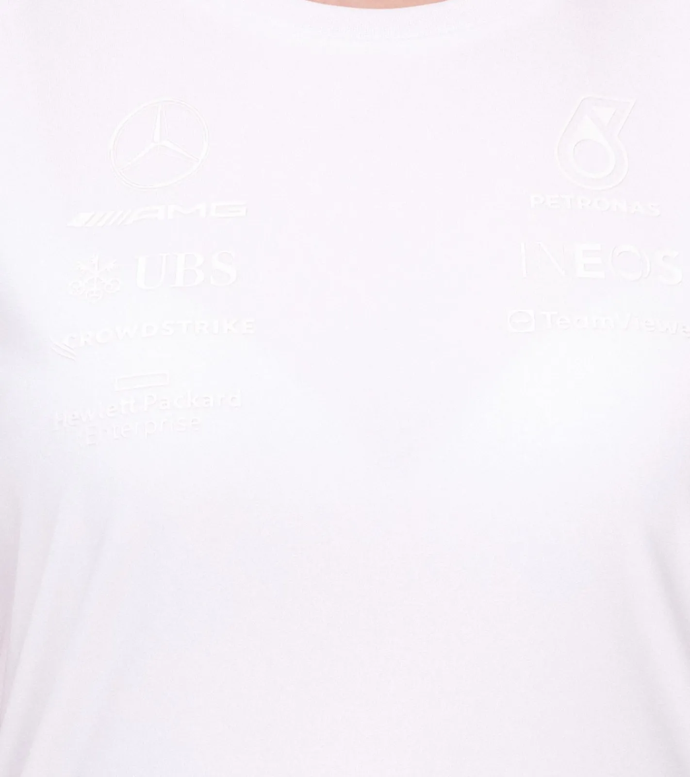 Mercedes-Benz AMG Petronas F1 Stealth Logo Damen T-Shirt mit Team- und Sponsoren-Logos Motorsport-Shirt 701225461 002 Weiß