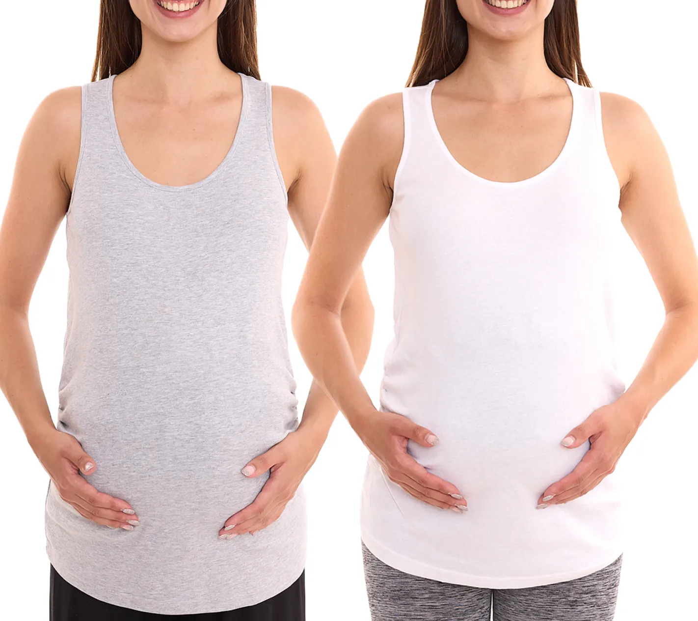neun 9 monate Damen Sommer-Top schlichtes Schwangerschafts-Shirt Umstandsmode Weiß oder Grau