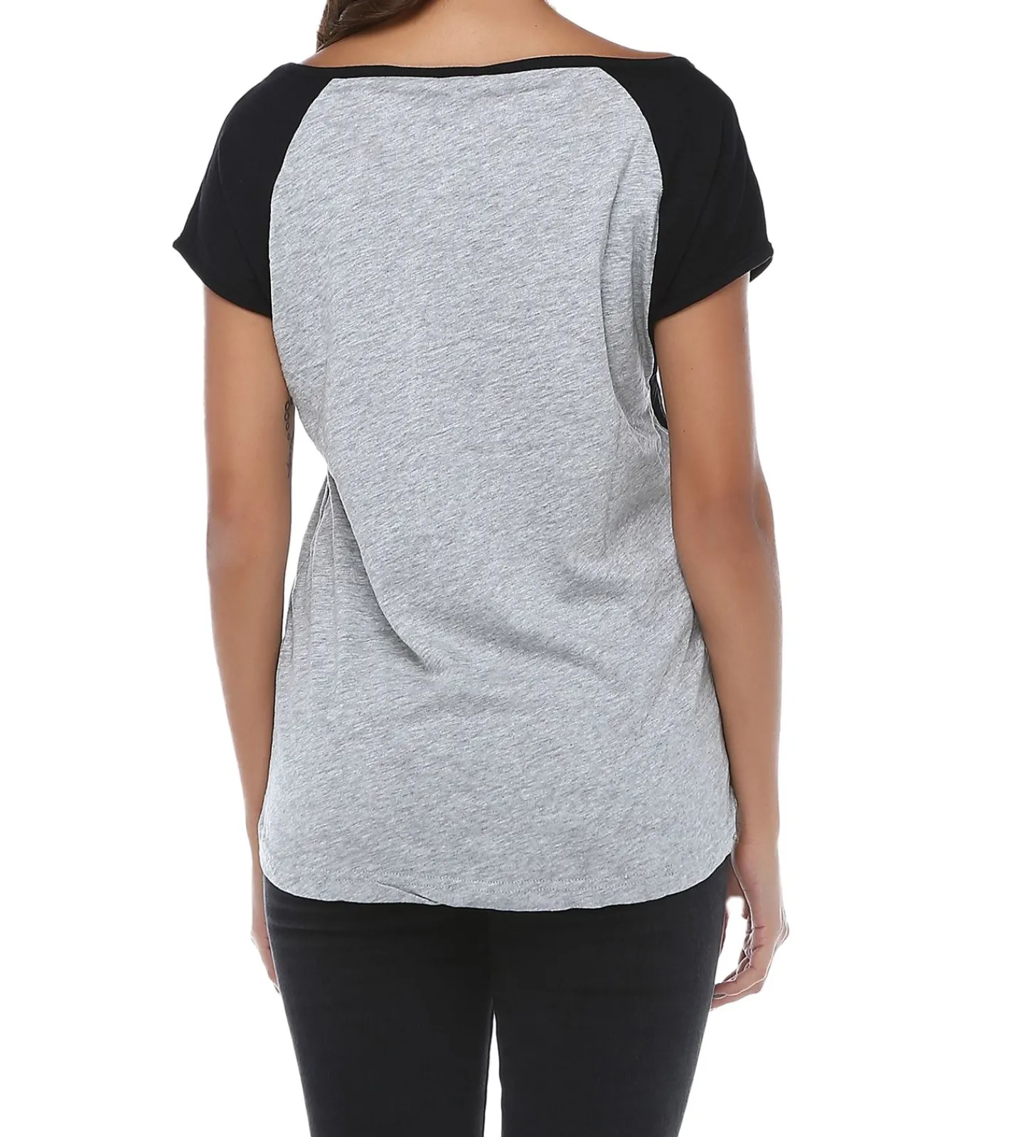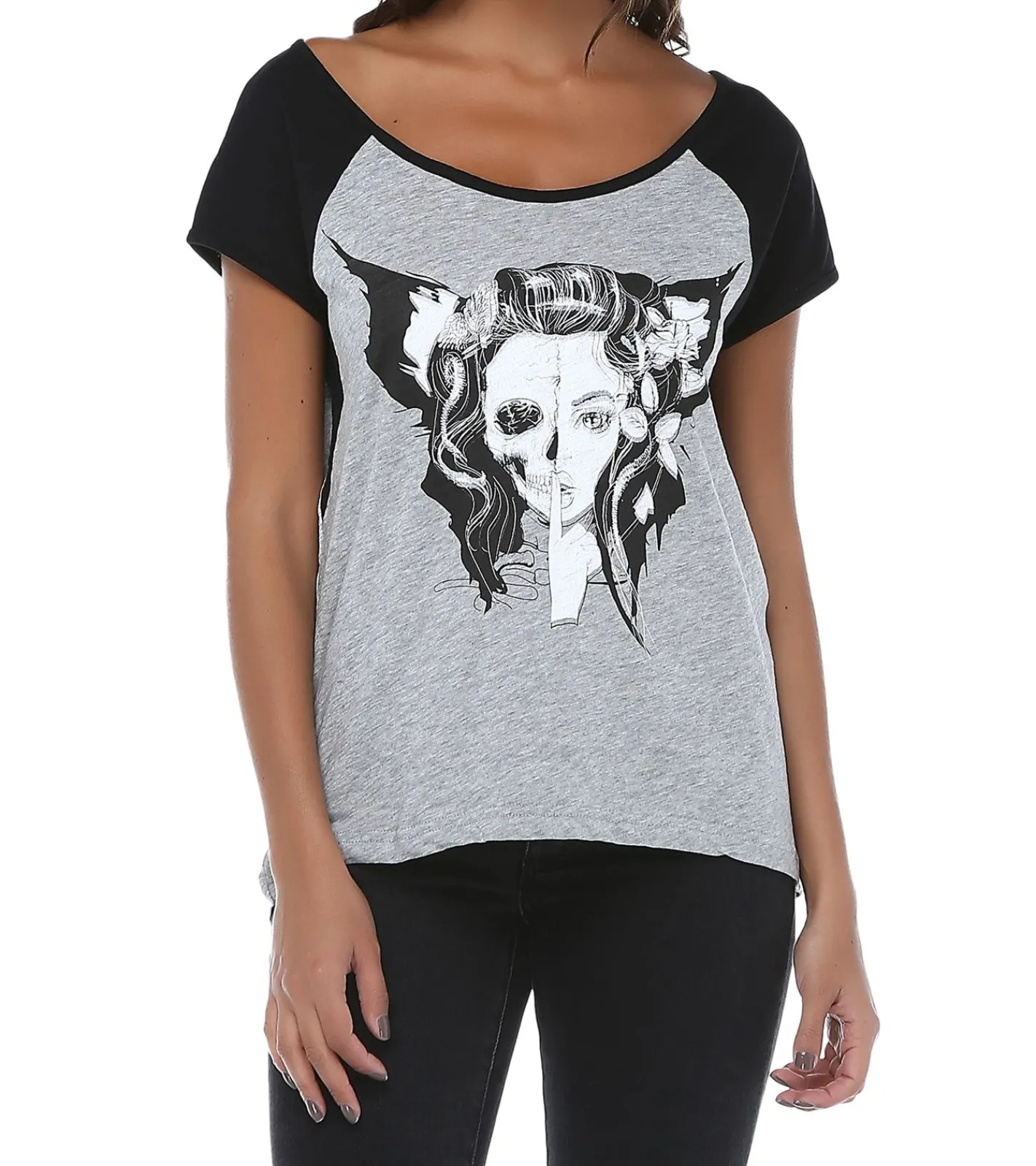 ROCKUPY Damen T-Shirt Kurzarm-Shirt mit Totenkopf-Print Baumwoll-Shirt W.0218001 Grau/Schwarz