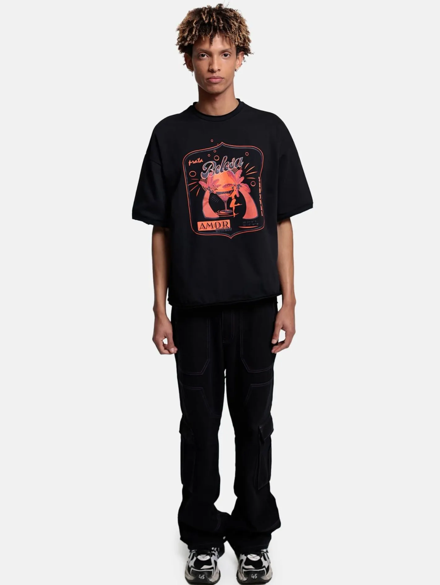 DWD Unisex Ipanema Girl T-Shirt für Damen oder Herren Rundhals-Shirt mit großem Front-Print Schwarz