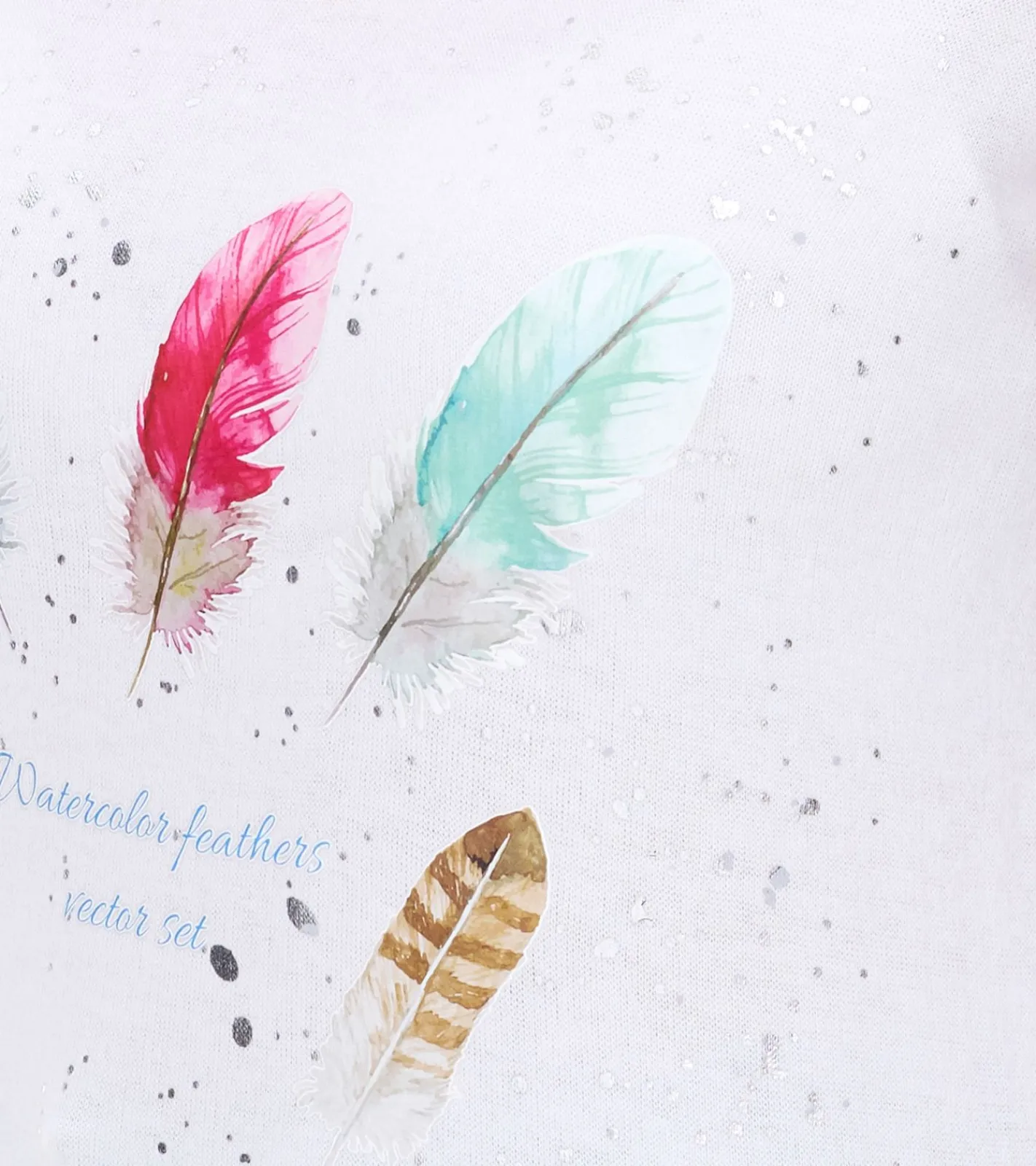 vestino Damen T-Shirt Kurzarm-Shirt mit Feder-Druck Sommer-Shirt 900548 Weiß