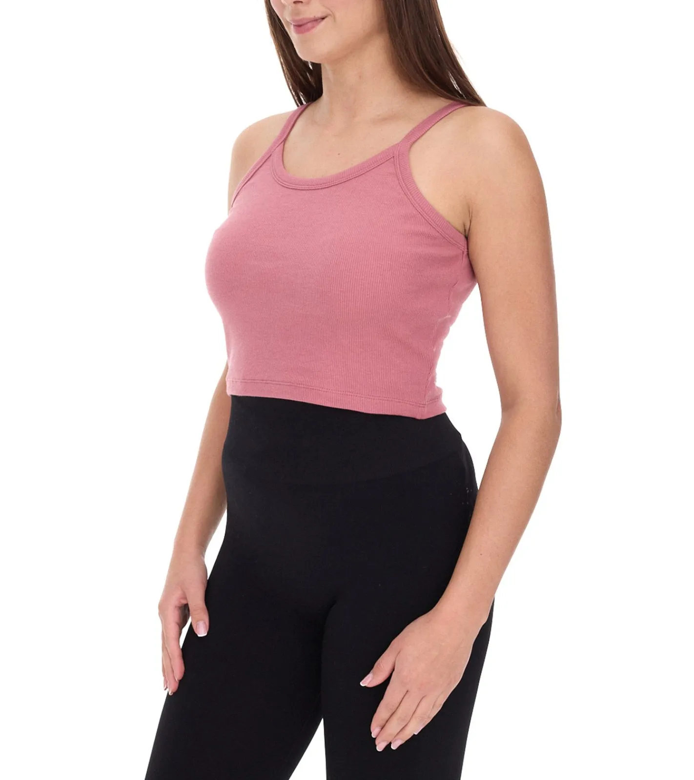 YOU DO YOU Damen Crop-Top geripptes Fitness-Top Baumwoll-Shirt Tanktop Yoga-BH 905101 Alt-Rosa