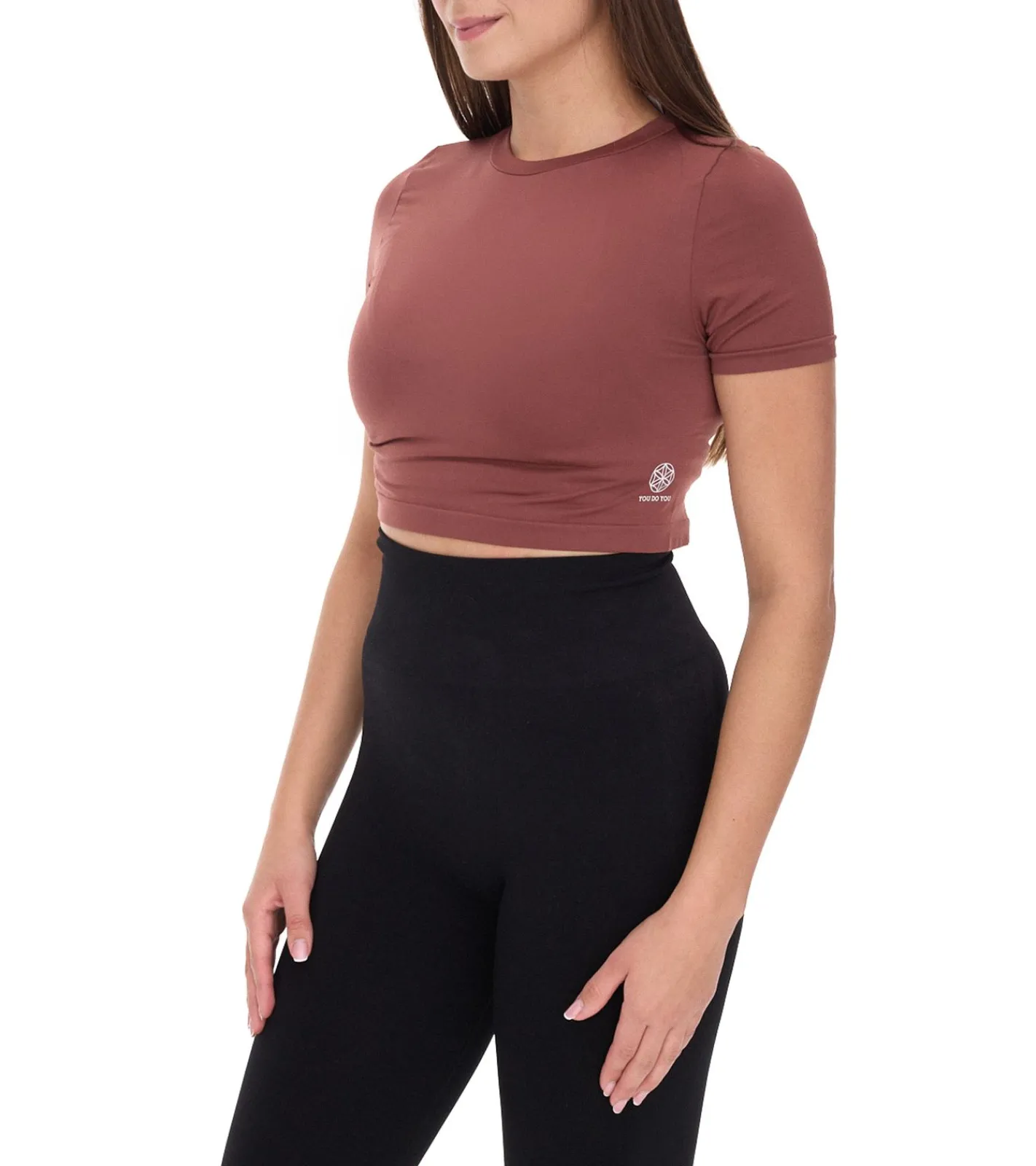 YOU DO YOU Damen T-Shirt im Cropped-Style Fitness-Top Kurzarm-Shirt Yoga-Mode 905041 Mahagoni-Braun