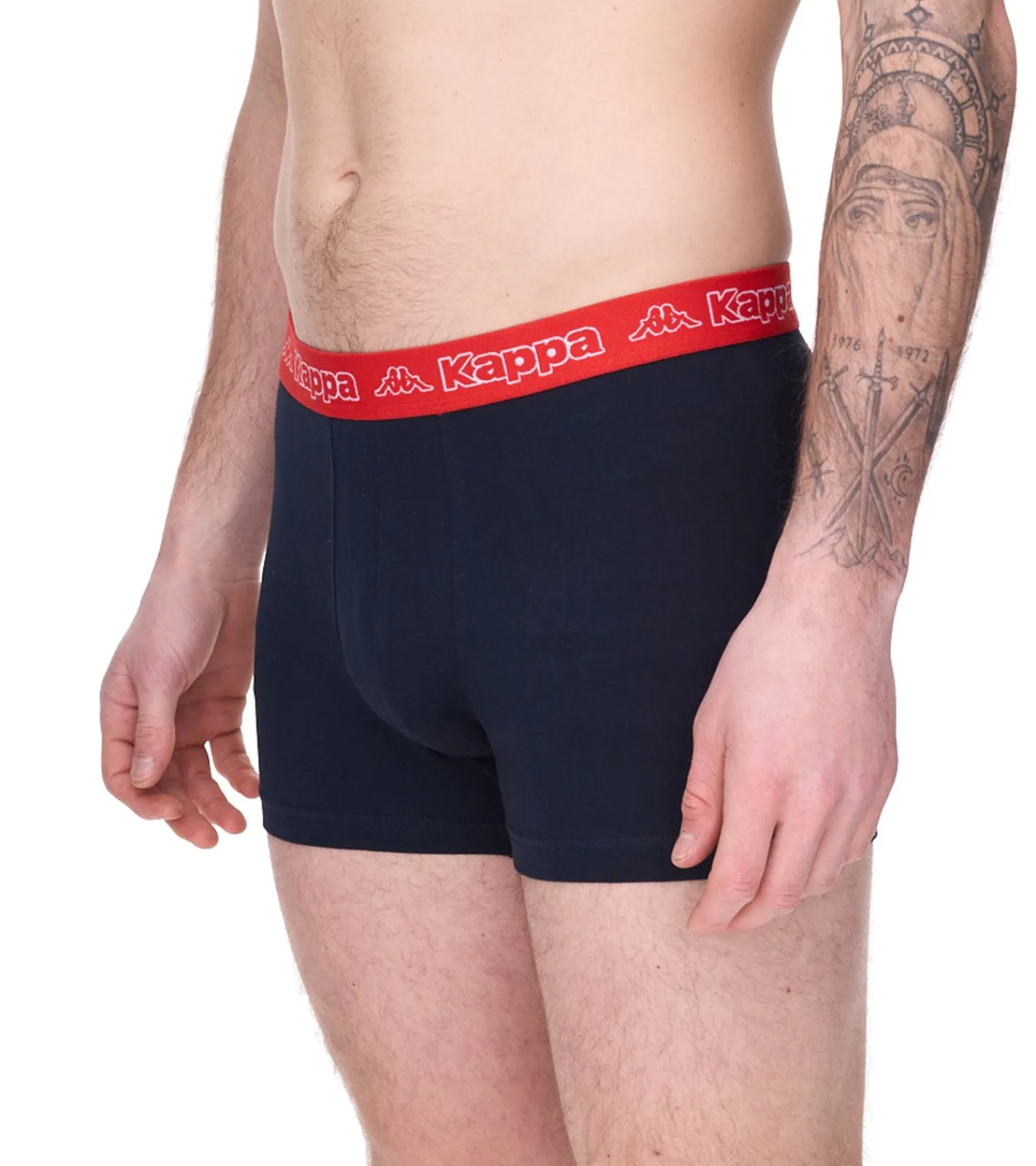 2er Pack Kappa Herren Boxershorts mit Marken Schriftzug und Logo Unterhose 351L1JW ADL Schwarz/Blau/Rot