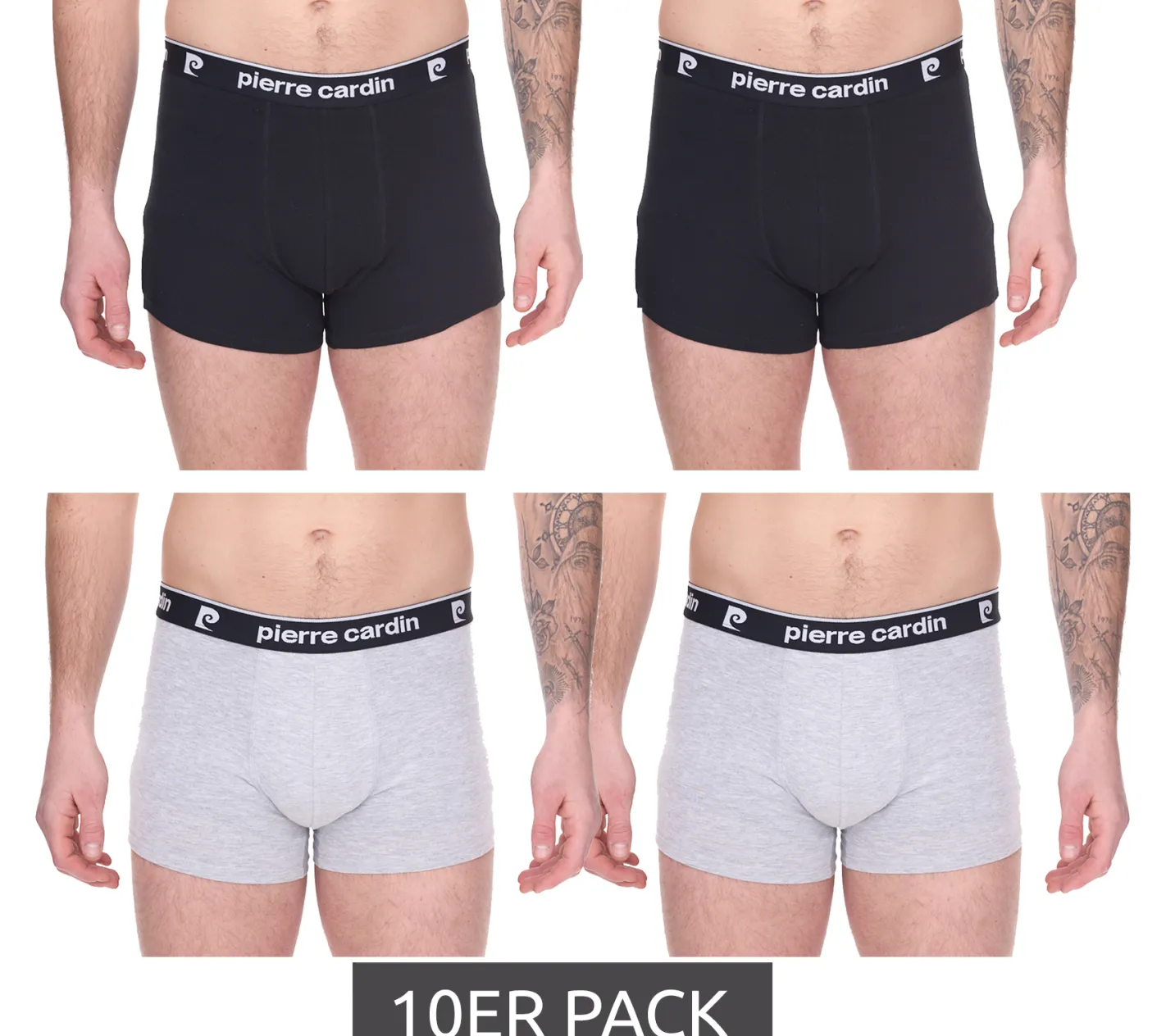 10er Pack Pierre Cardin Herren Baumwoll-Boxershorts Unterwäsche R808 Schwarz oder Grau
