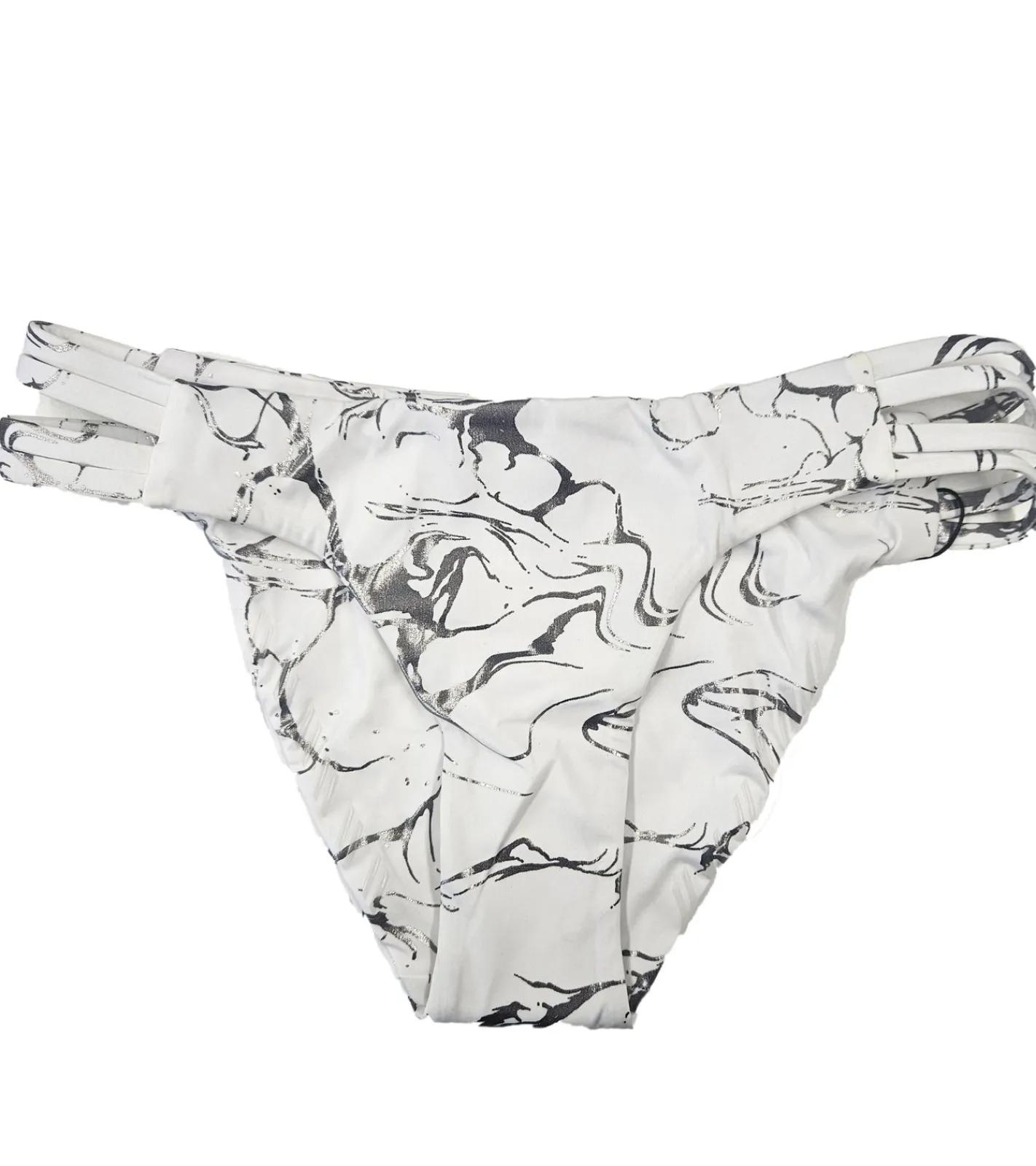 Hurley Quick Dry Max Damen Bikini-Hose mit Marmor Allover-Print Bademode mit seitliche Cut Outs AA4624 100 Weiß