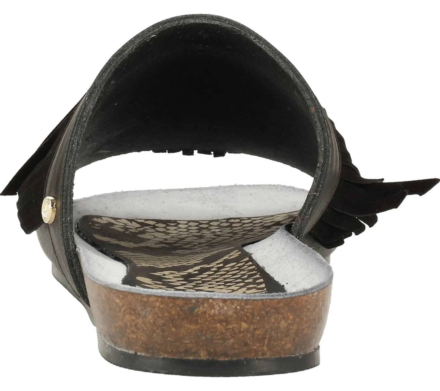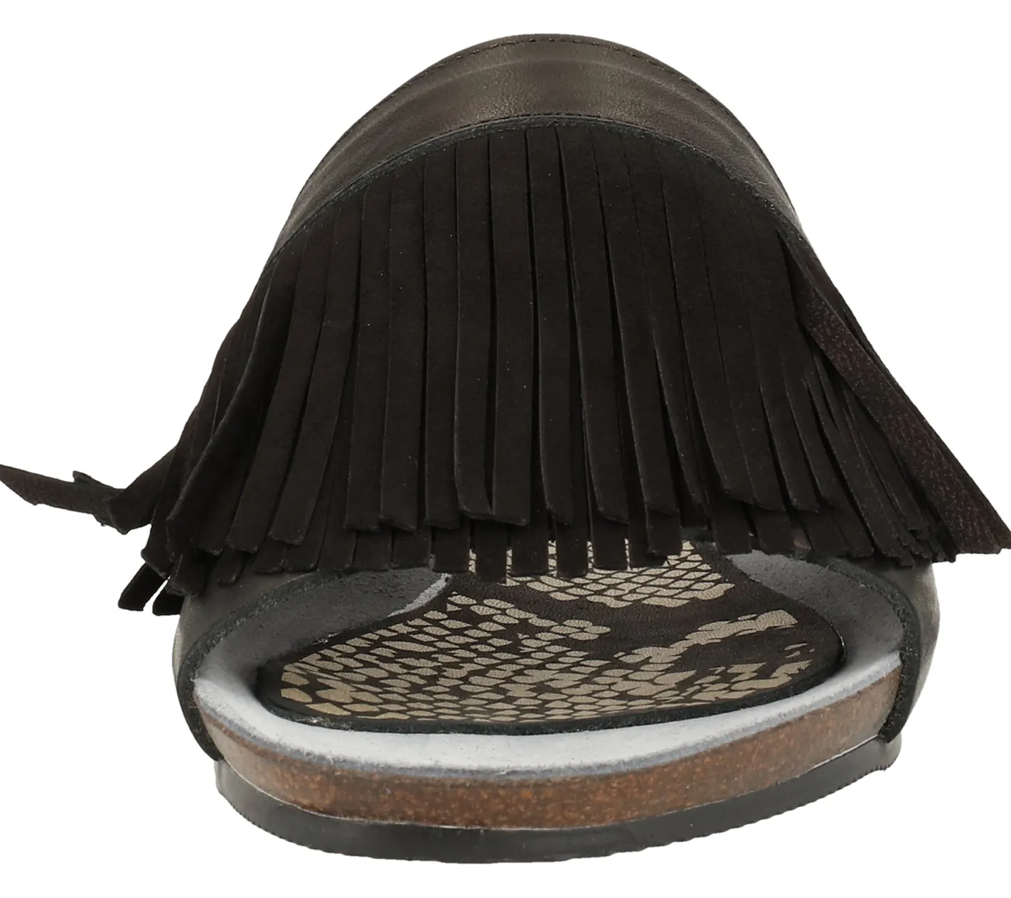 FRED DELA BRETONIERE Damen Pantolette mit aufgesetzten Fransen Echtleder-Sandale 170010099 0009 Schwarz