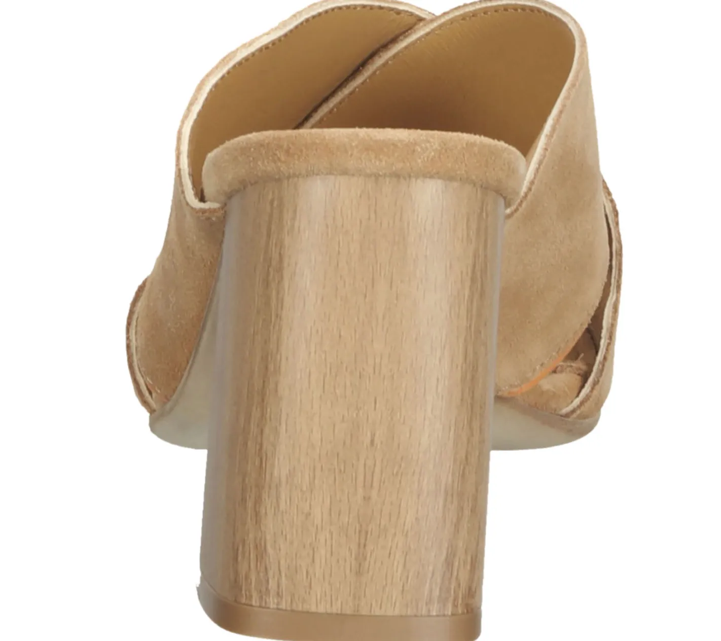 SANSIBAR Damen Echtleder-Schuhe moderne Sommer-Sandale mit Blockabsatz offener Slipper 1076140 Hellbraun