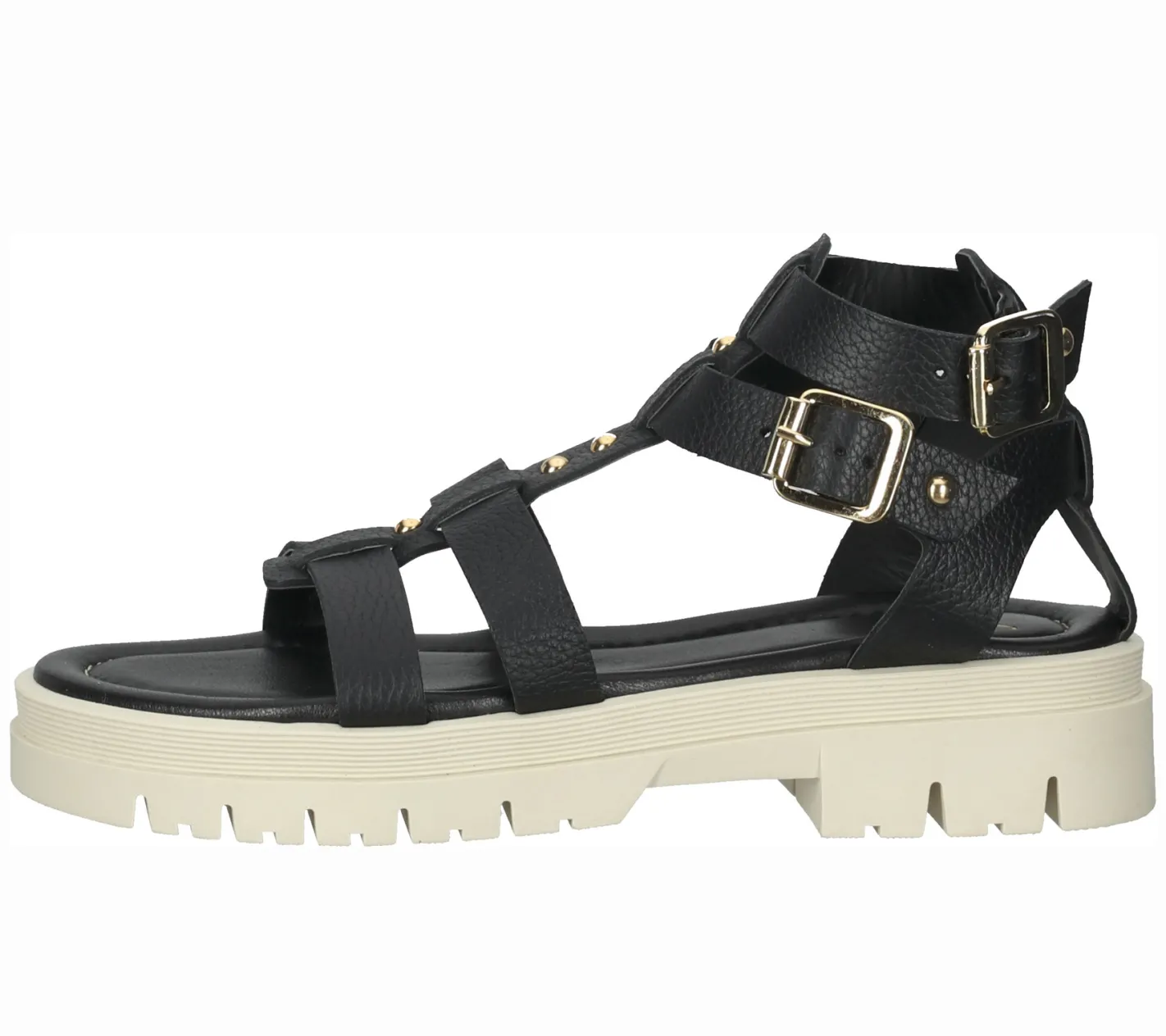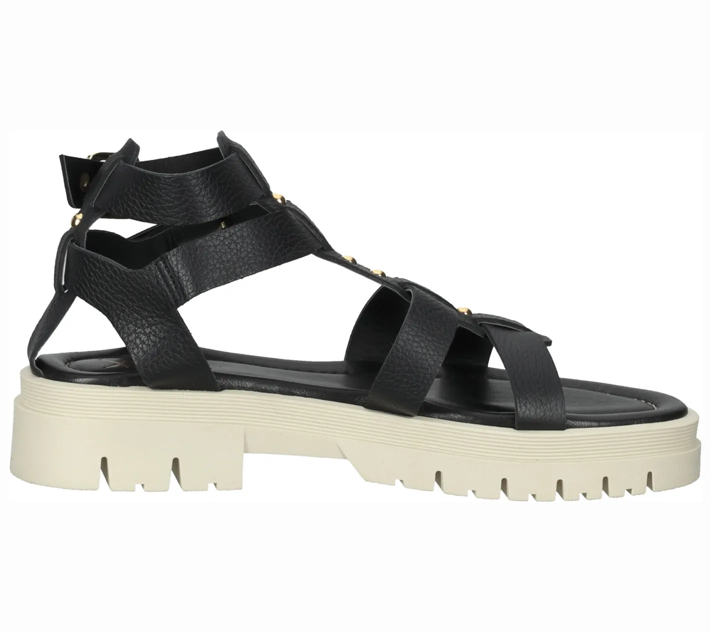 SANSIBAR Damen Sandalette Echtleder-Sandalen im Gladiator-Stil mit Nieten 1096420 Schwarz