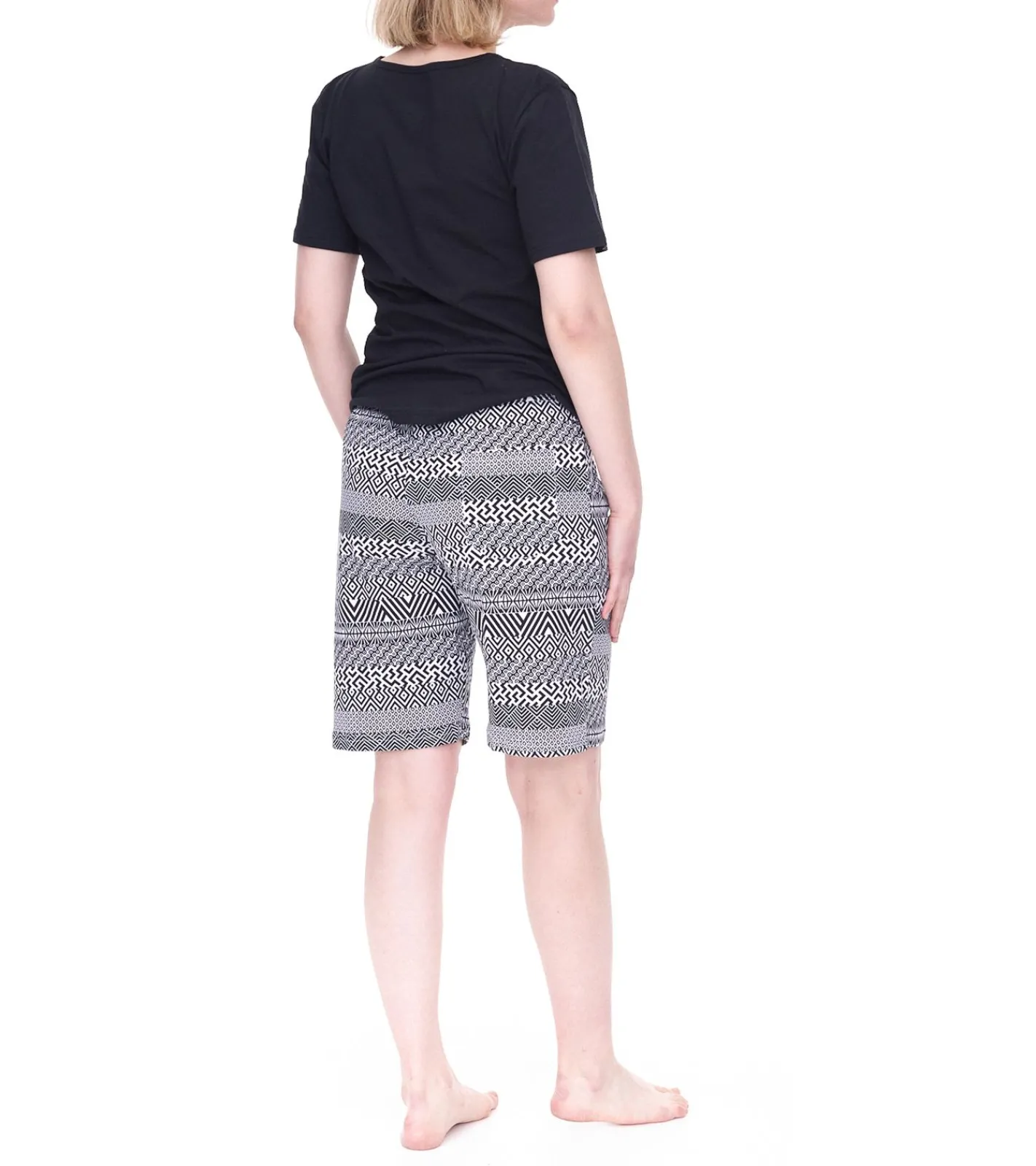 CINQUE Shorty Damen Baumwoll-Pyjama kurze Hose mit Blumen-Print Rundhals-Shirt Rosa/Weiß oder Schwarz/Weiß