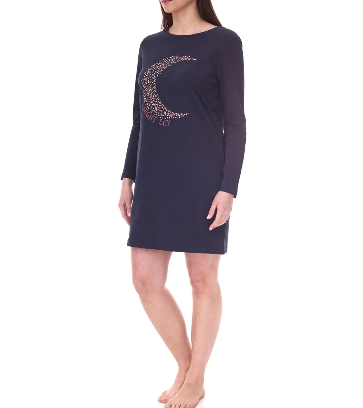 iris & lilly Damen Nachthemd langärmeliger Jersey-Pyjama mit Mond-Print NS2502 – B07QP1JKL5C Navy