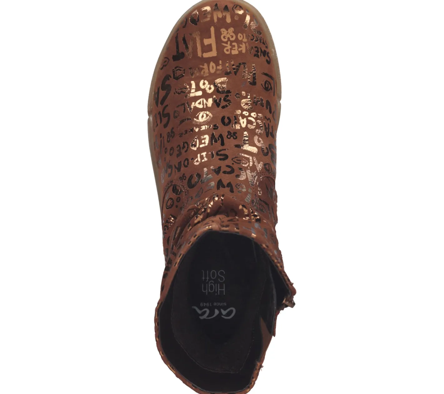 ara Damen Echtleder-Schuhe Highsoft Stiefel mit glänzendem Allover-Print 1089461-42 Braun