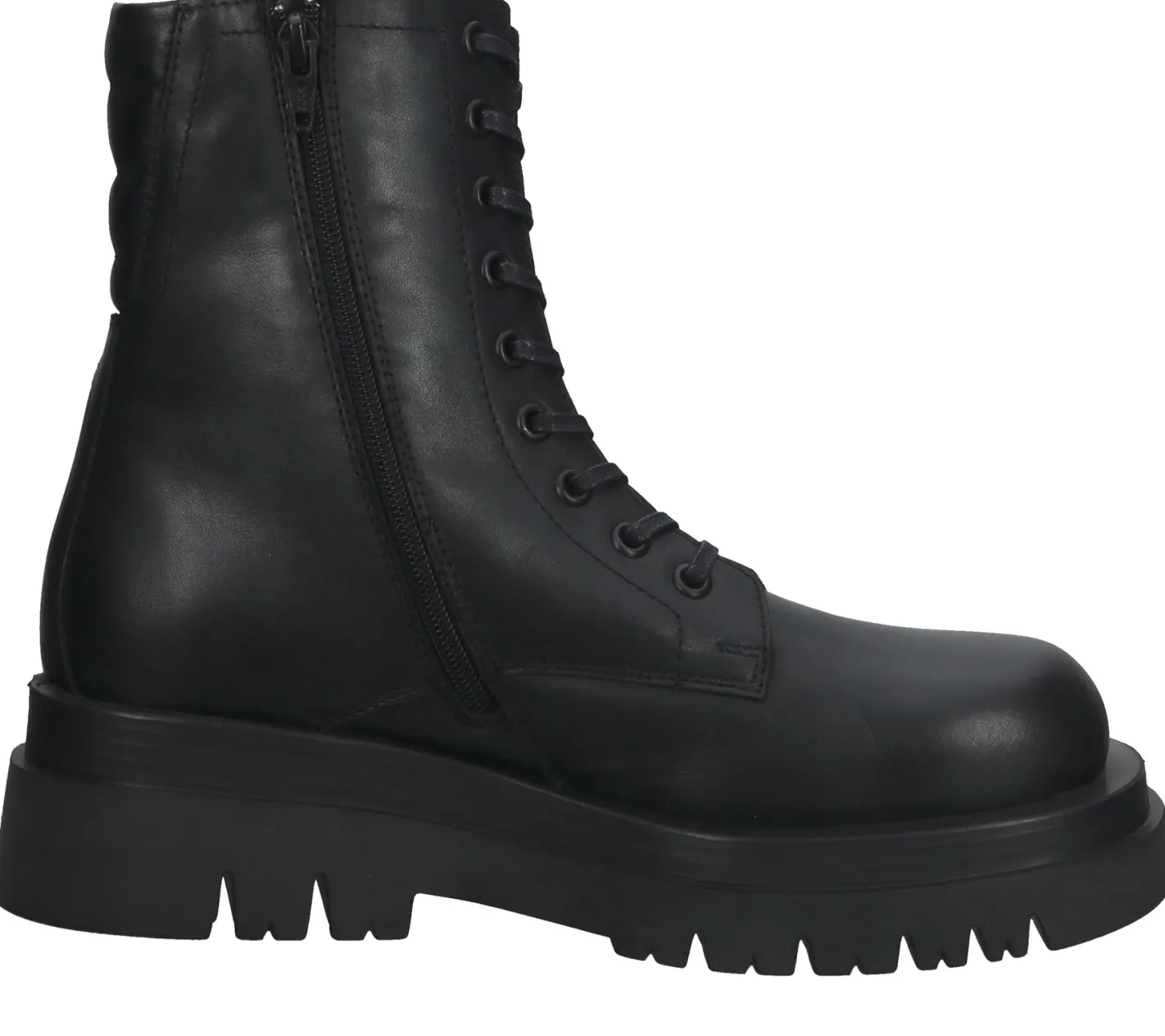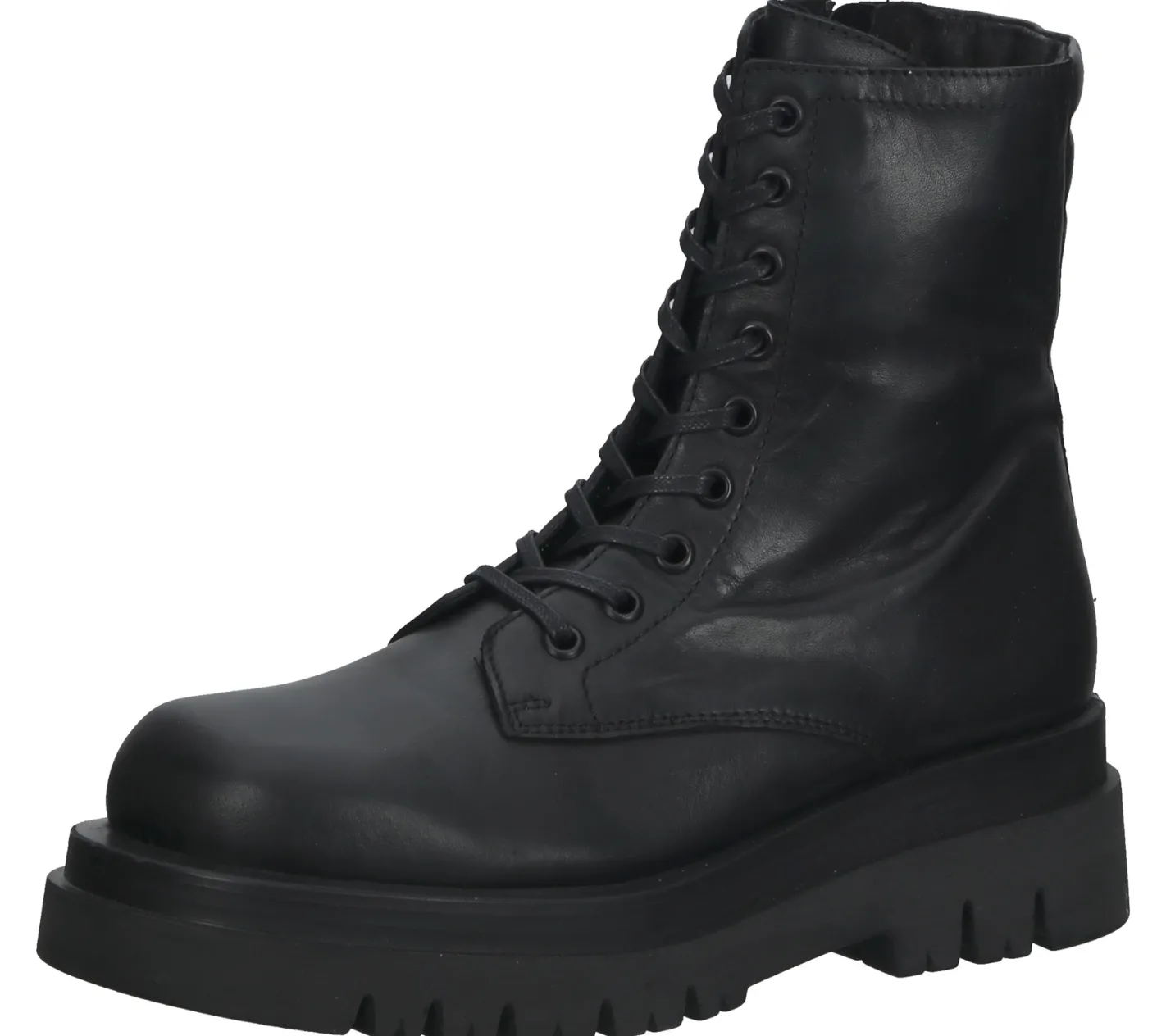ILC Damen Biker-Stiefel mit derber Sohle Echtleder-Boots Schnür-Stiefel C44-3542-01 Schwarz