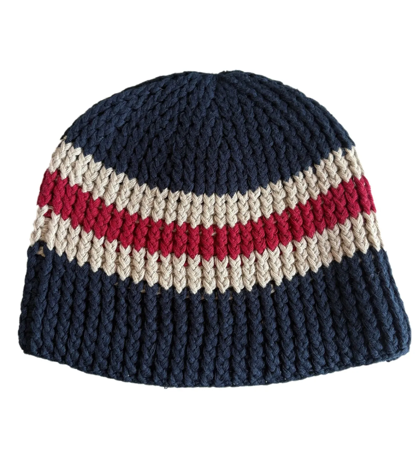 Stylische Häkel-Mütze Winter-Mütze weiche Strick-Mütze mit Streifen Baumwoll-Mütze 7314GUY Navy/Weiß/Rot