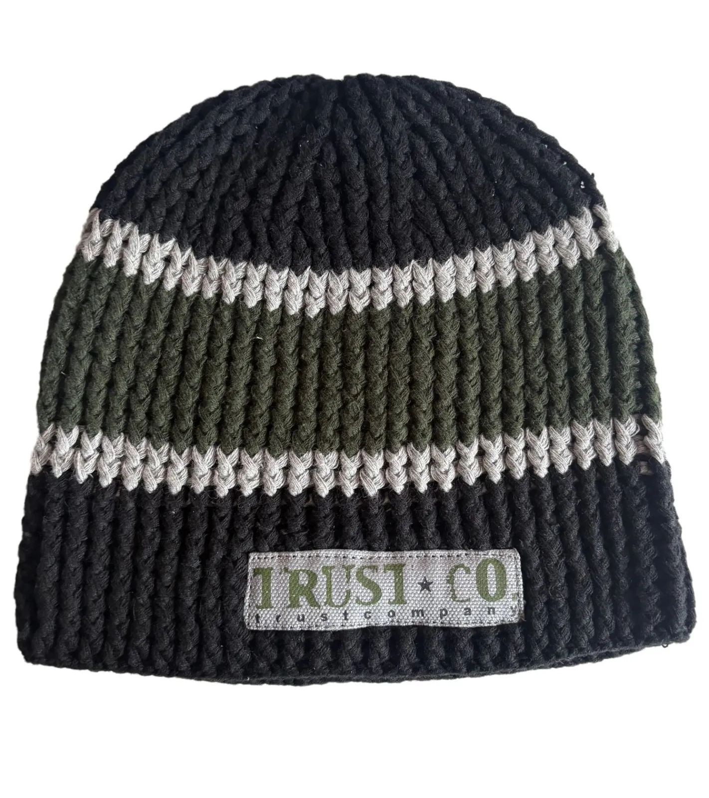 Trust Co Unisex Häkel-Mütze Winter-Mütze weiche Strick-Mütze mit Streifen Baumwoll-Mütze 1551TRT Navy/Weiß/Grün