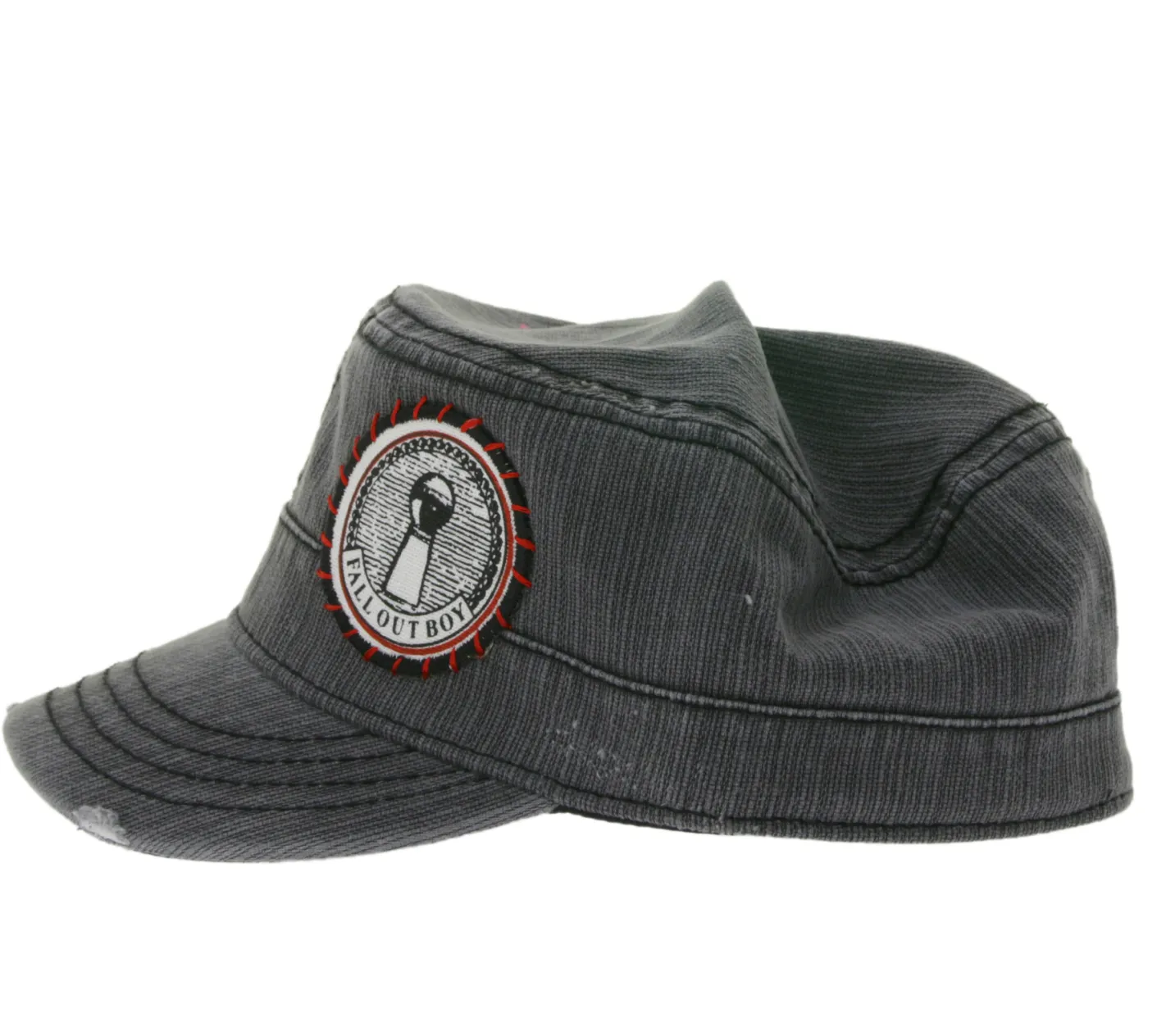 „FALL OUT BOY“ Unisex Cap Baumwoll-Cap im millitärischen Schnitt mit leicht gebogenen Schnitt Grau/Rosa