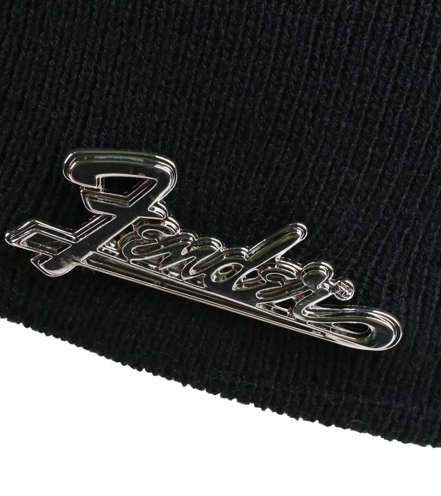 Fender Beanie mit Metall-Logo Strick-Mütze vom bekannten Gitarren-Hersteller Fan-Beanie KC230303FEN Schwarz