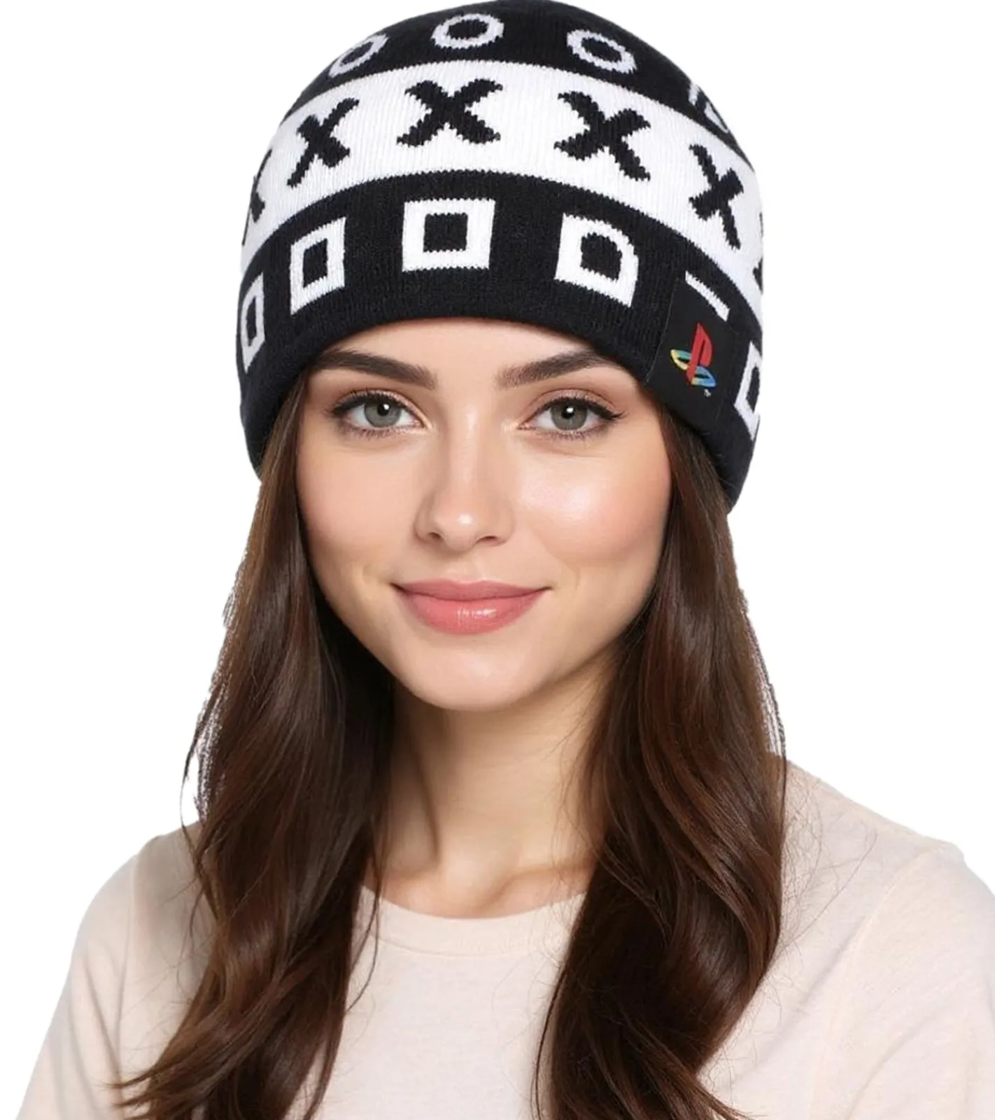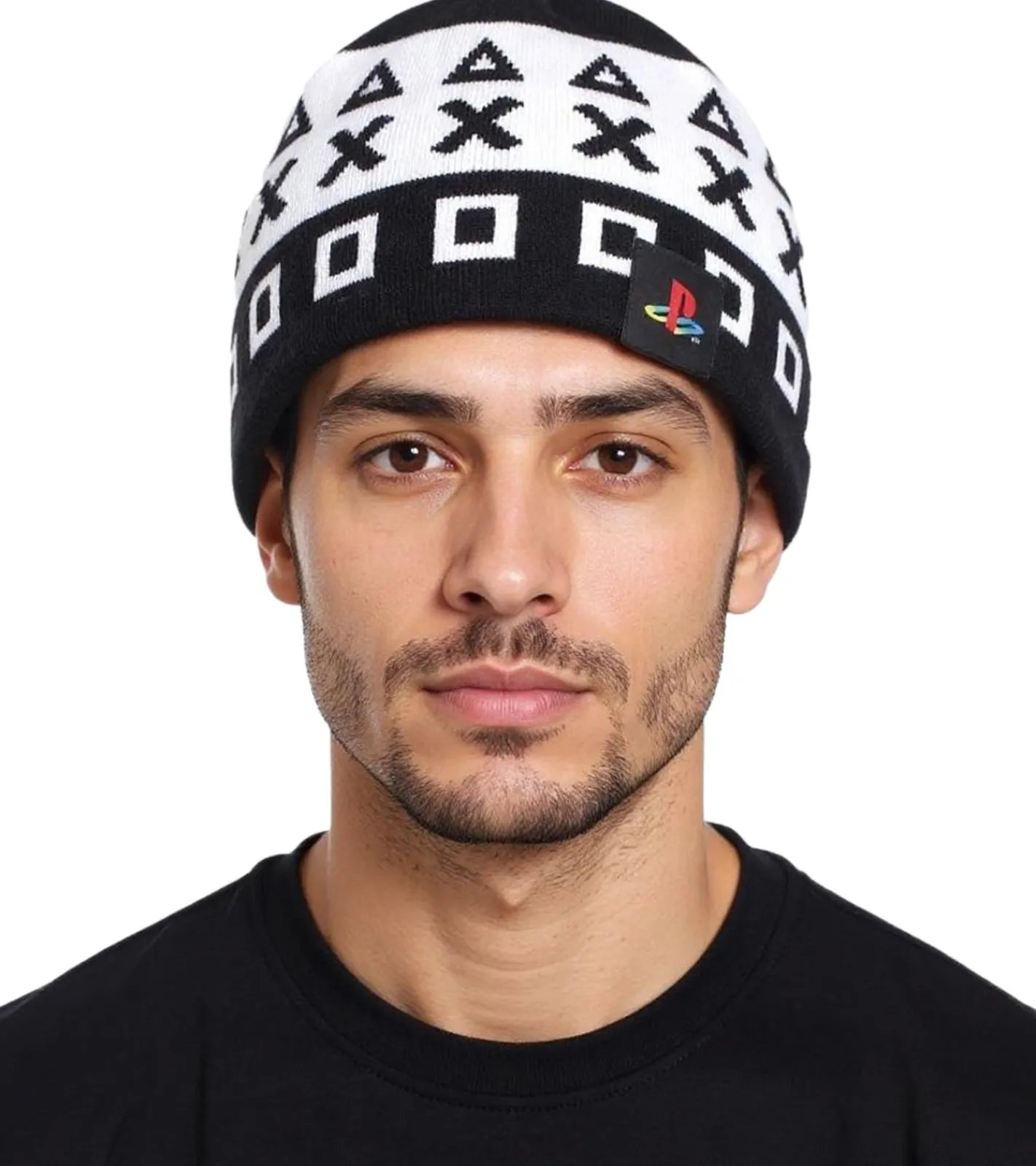 PlayStation Beanie mit Playstation Symbole Gaming-Mütze Strick-Beanie Fan-Artikel KC042612SNY Schwarz/Weiß