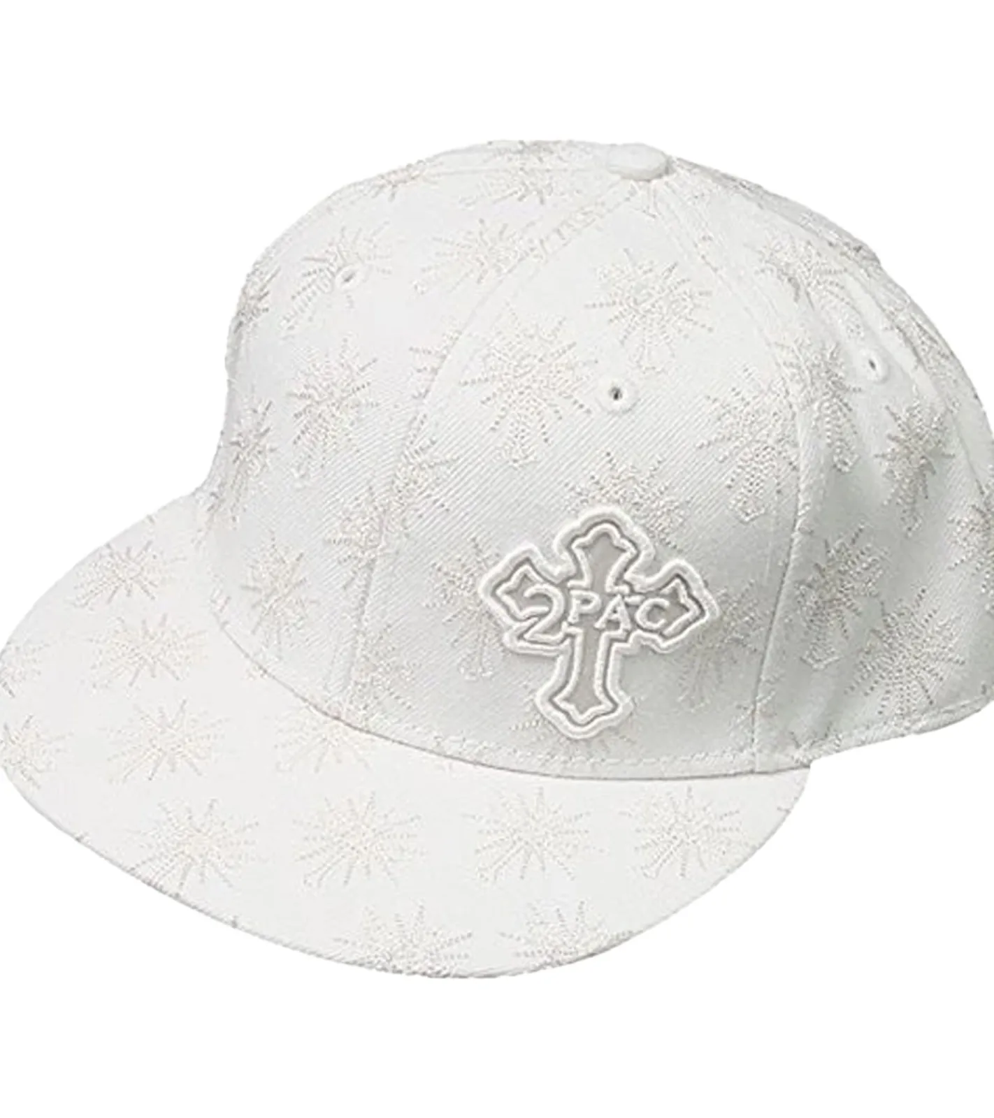 Tupac Damen und Herren Hip Hop Cap mit Kreuz-Stickerei Flat-Rim TC108767TUP4 Weiß