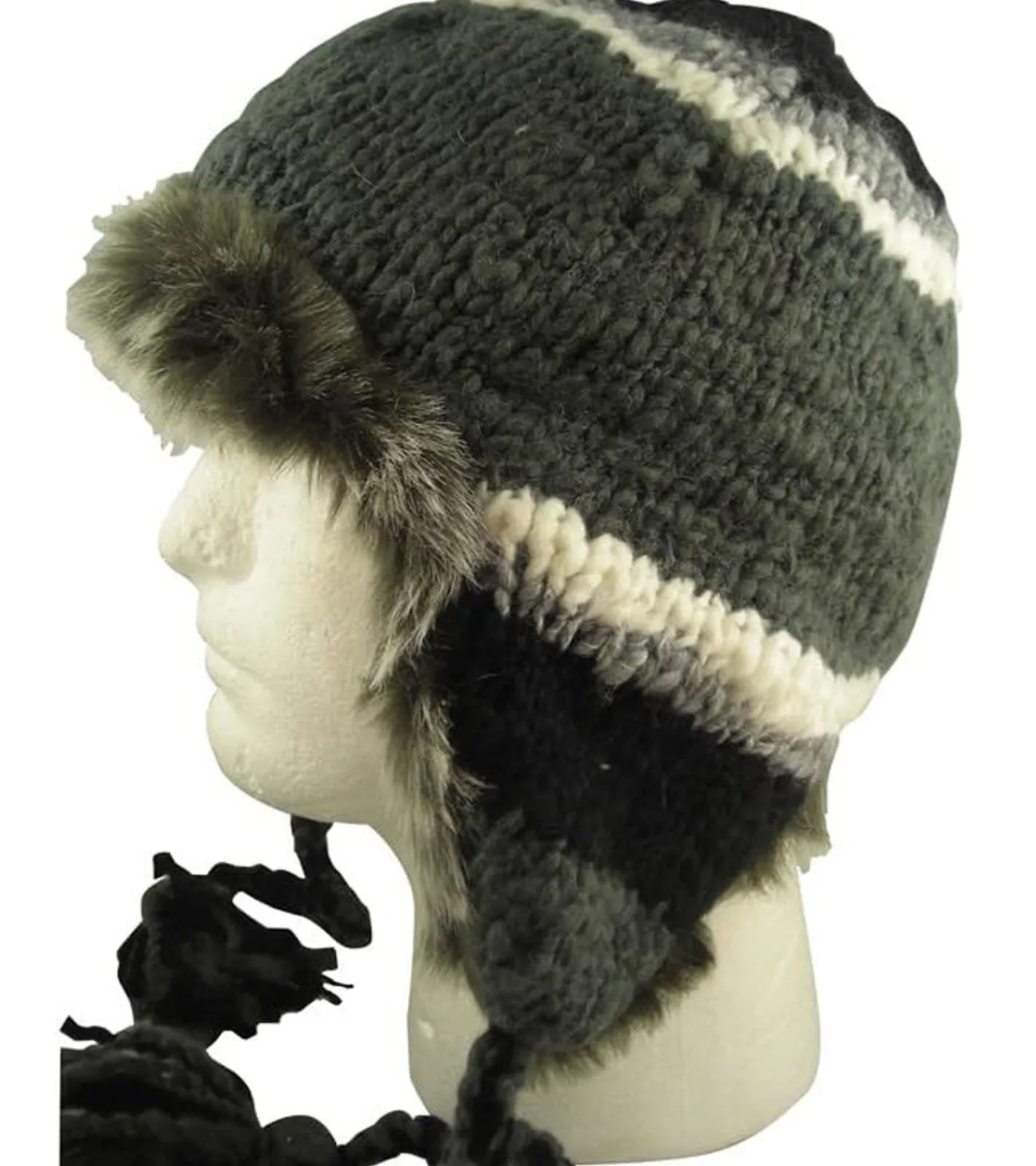 warme Mütze Damen und Herren Kopfbedeckung mit Kunstfell und Fleecefutter BR150259PLB Schwarz/Grün/Grau/Weiß