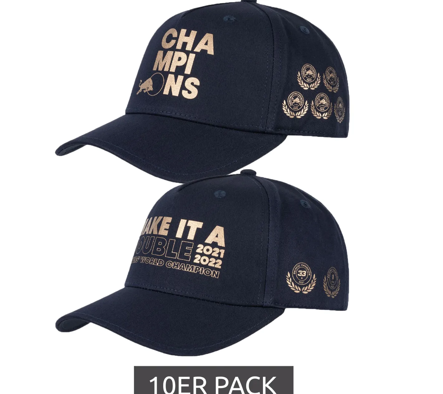 10er Sparpack Oracle Red Bull Racing x Verstappen FW 2022 Champions Meisterschafts-Cap „Make it a double“ oder „Champions“ Navy
