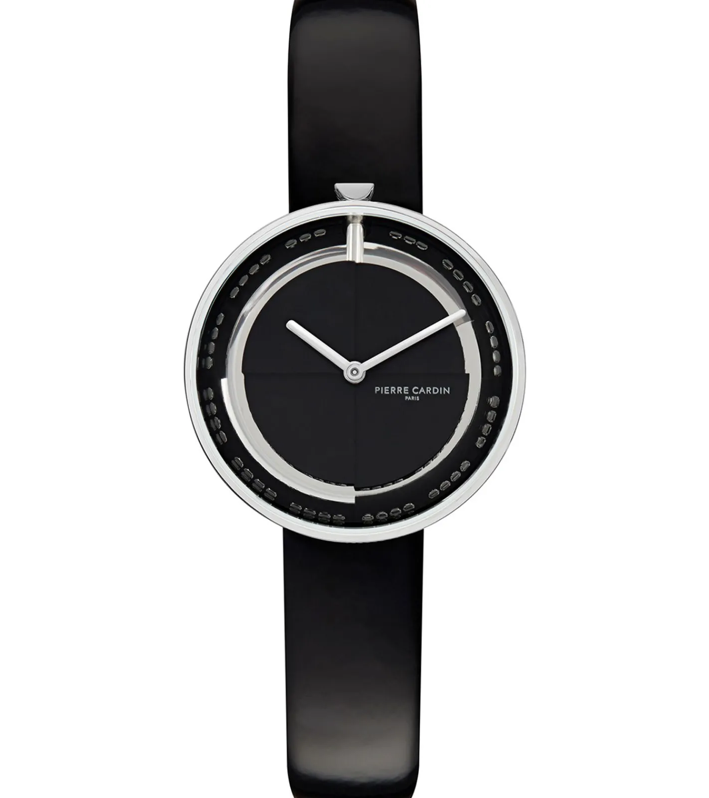 Pierre Cardin Damen Armband-Uhr modernes Ziffernblatt analoge Quarz-Uhr mit Leder-Armband 3ATM 32mm CMA.0000 Schwarz/Silber