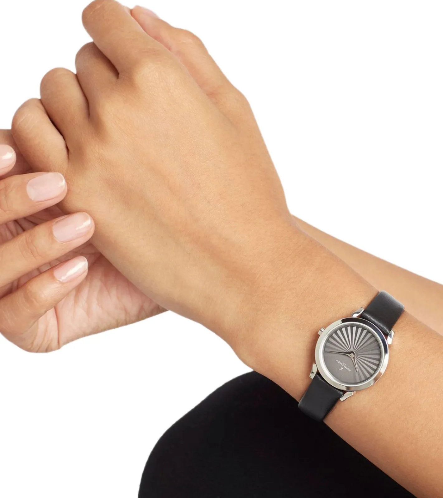 Pierre Cardin Damen Armband-Uhr schlichtes Ziffernblatt analoge Quarz-Uhr mit Leder-Armband 3ATM 27mm CPI.2510 Schwarz/Silber