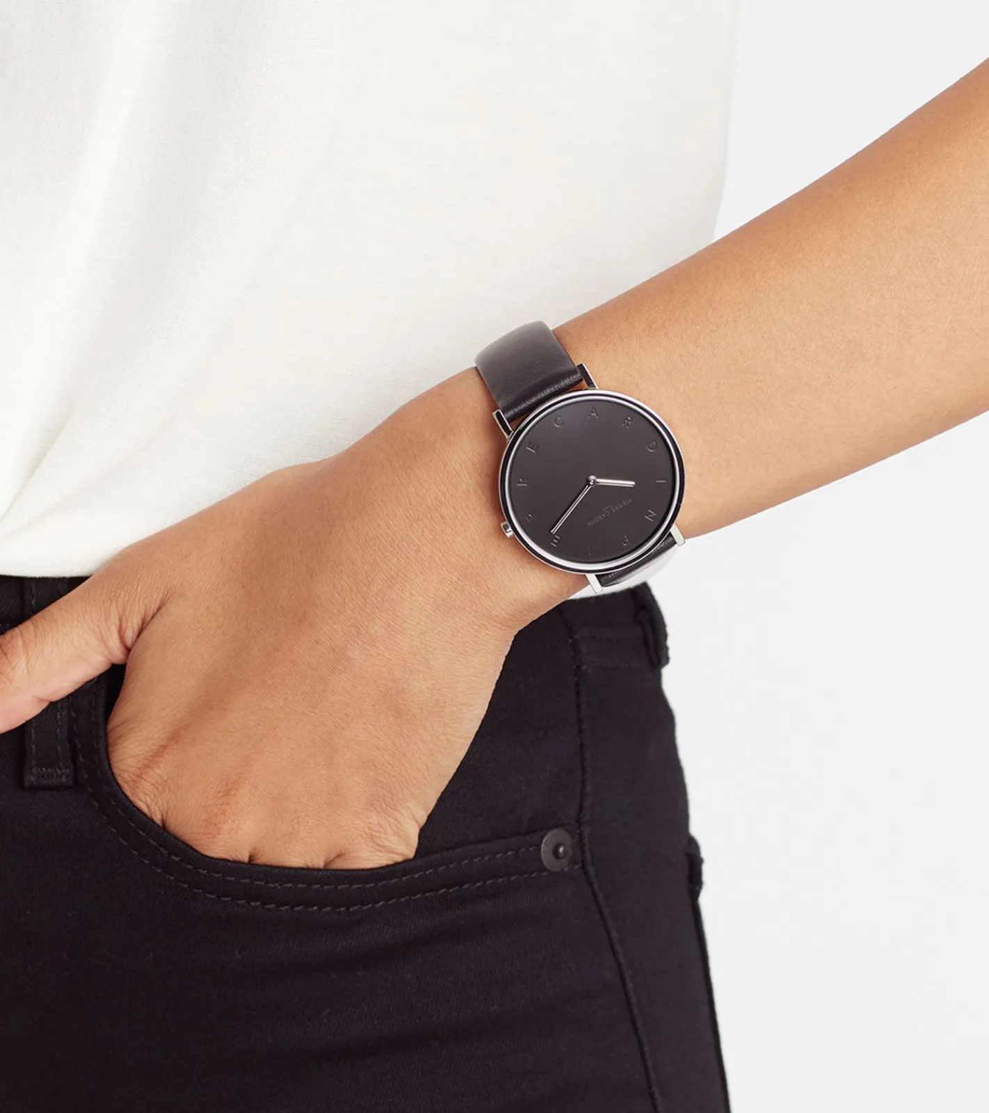 Pierre Cardin Damen Armband-Uhr schlichtes Ziffernblatt analoge Quarz-Uhr mit Leder-Armband 3ATM 39mm CBV.1002 Schwarz/Silber