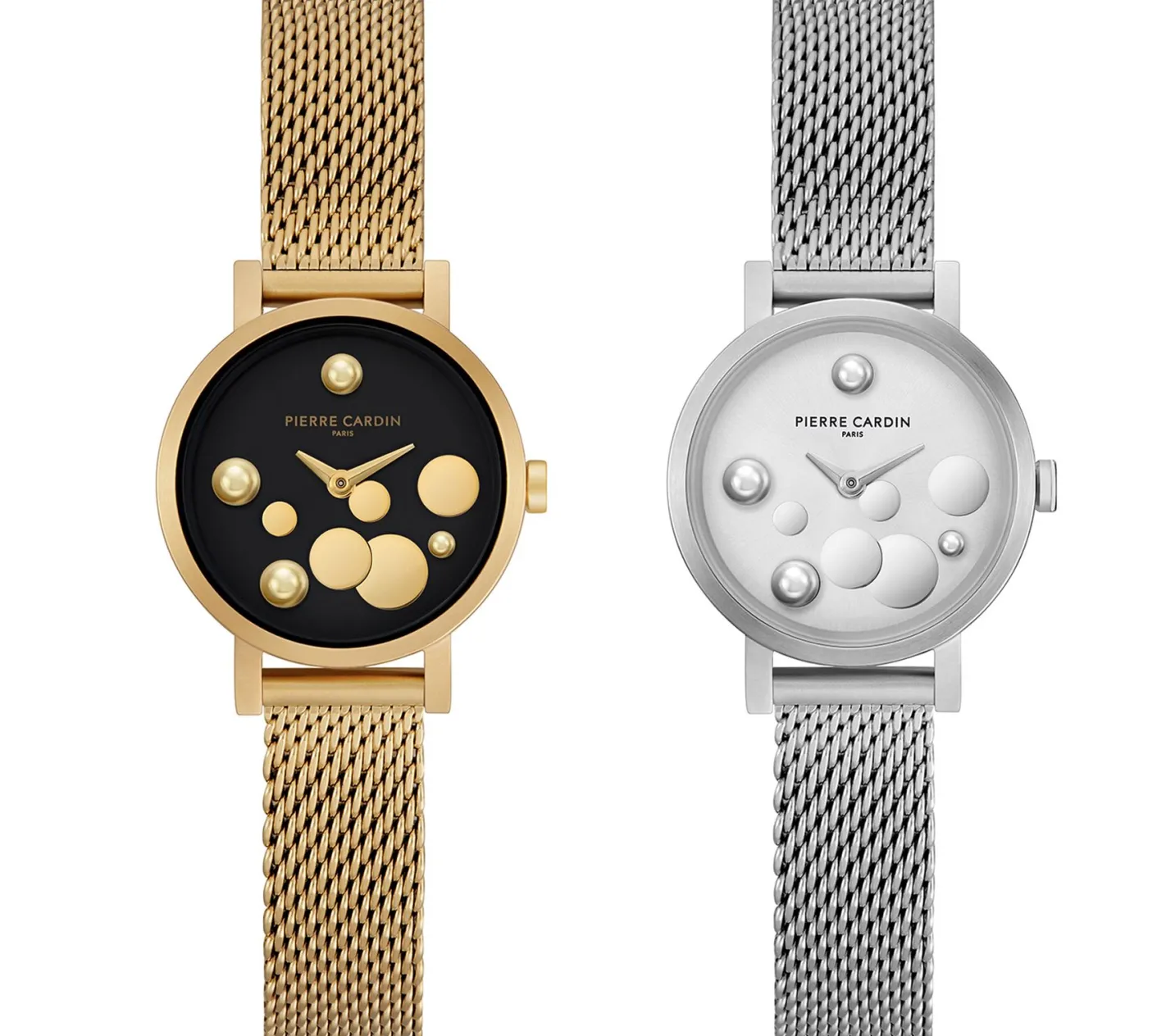 Pierre Cardin Damen Armband-Uhr Ziffernblatt mit silbernen Kreis-Details analoge Quarz-Uhr mit Edelstahl-Armband 3ATM 28mm CCM.050 Silber oder Gold