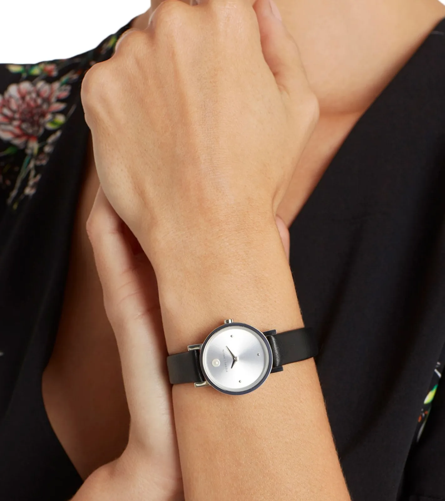 Pierre Cardin Damen Zweizeiger-Armband-Uhr Ziffernblatt mit silbernen Kreis-Details analoge Quarz-Uhr mit Leder-Armband 3ATM 27mm CCM.05 Silber/Schwarz/Weiß/Blau/Grau/Rosa