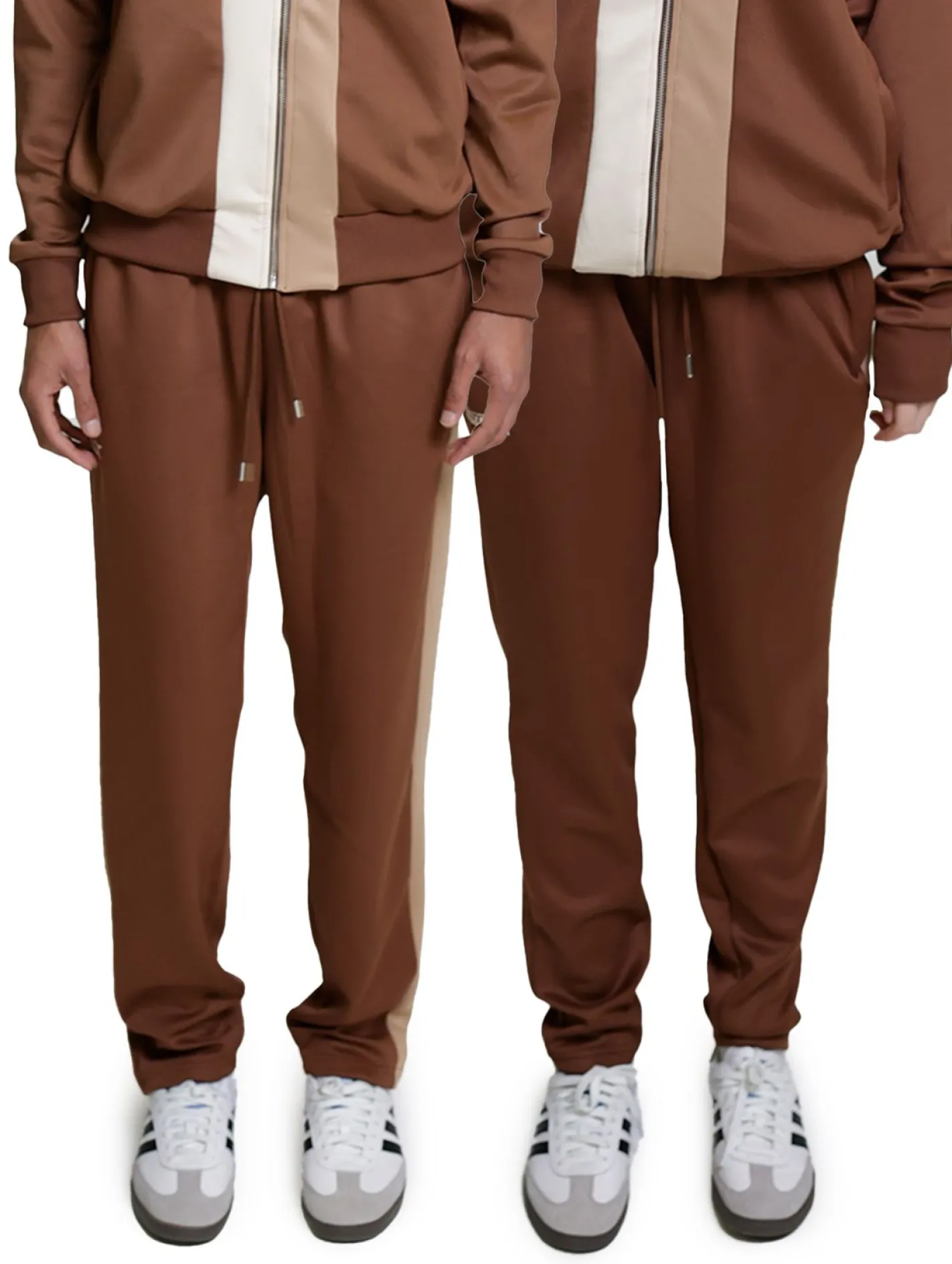 DWD Unisex Tapioca Jogging-Hose für Damen oder Herren Sweat-Pants mit seitlichen Retro-Streifen Braun