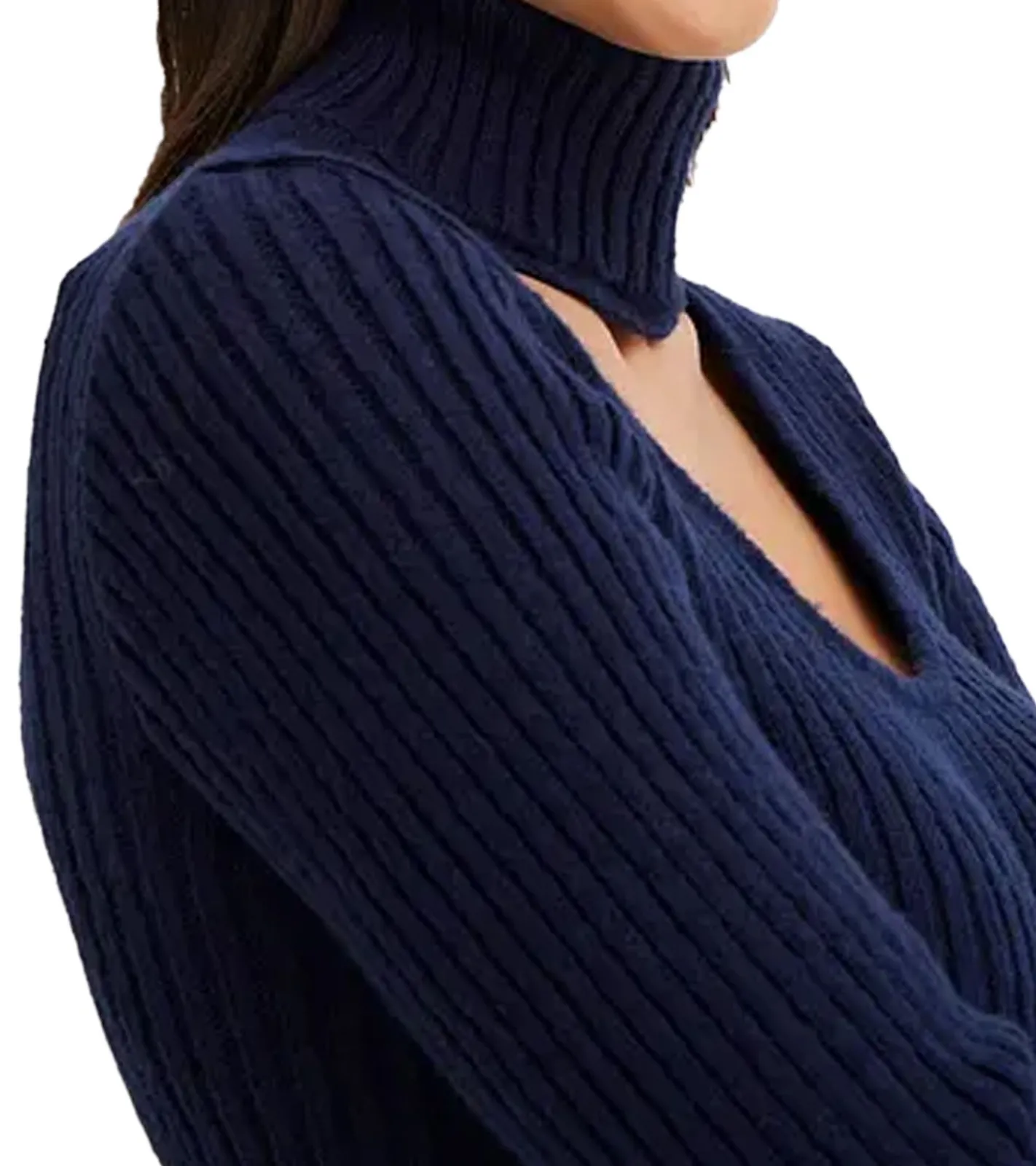 Damen Strick-Kleid Mini-Kleid mit Rollkragen und Ausschnittdetails Langarm-Kleid in Mahagoni-Braun oder Dunkel-Blau