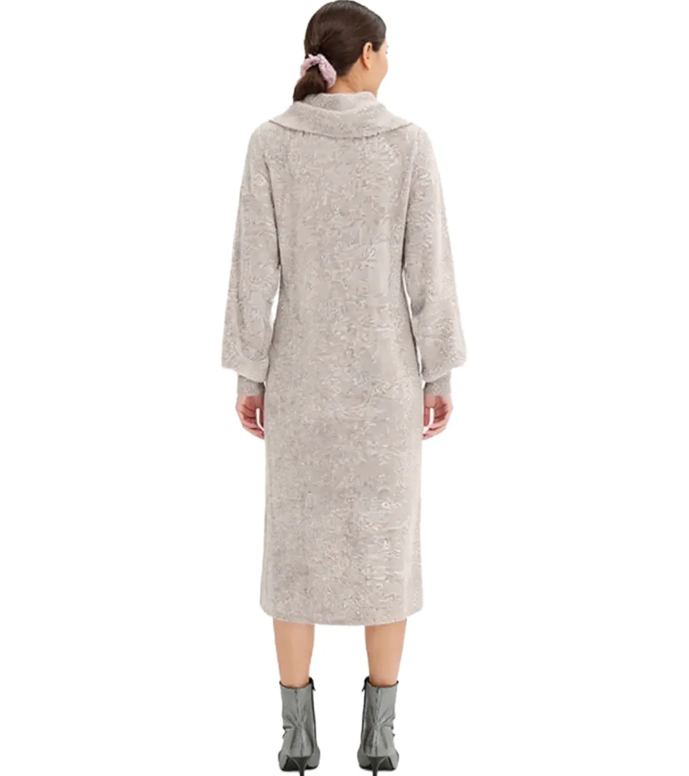 weiches Damen Midi-Kleid mit weitem Rollkragen Langarm-Kleid 935820 Grau