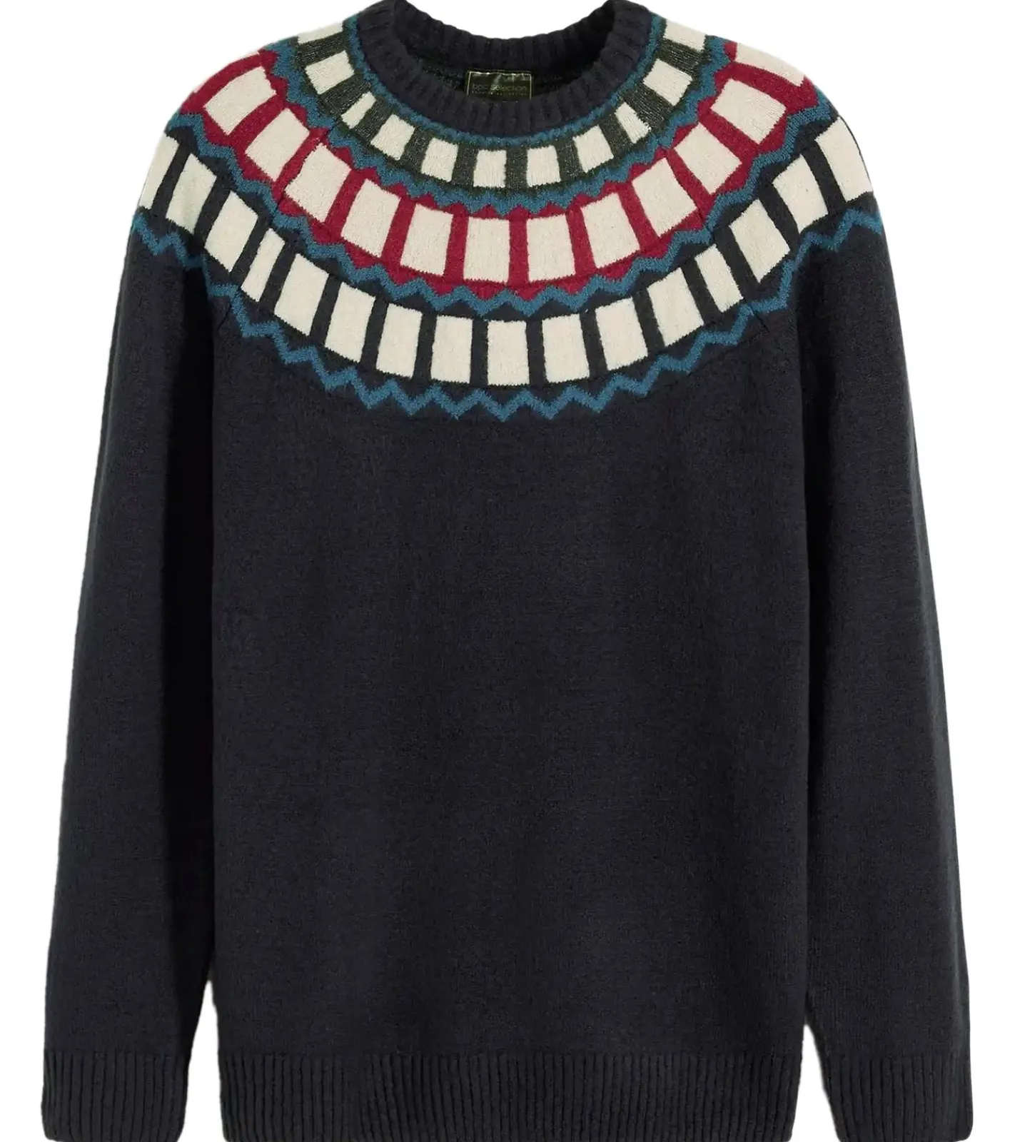 Herren Strick-Pullover mit geometrischen Muster Freizeit-Sweater in Schwarz oder Blau