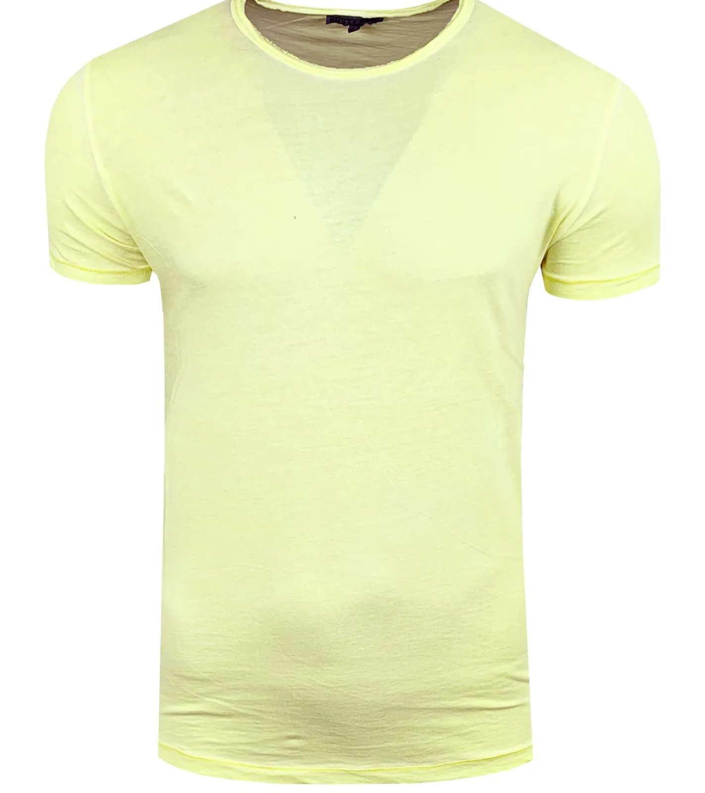 Herren T-Shirt Basic Baumwoll-Shirt verwaschenes Rundhals-Shirt Kurzarm R-15200 Neon Gelb