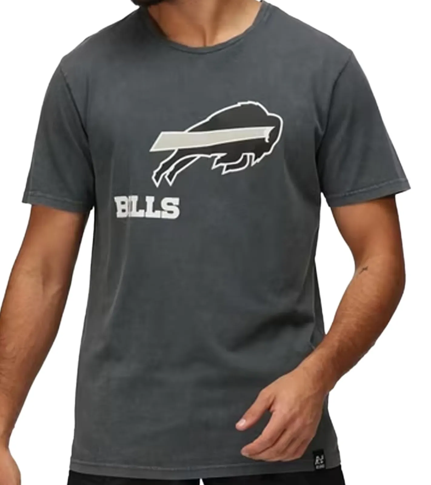 RE:COVERED X NFL Herren T-Shirt Buffalo Bills Logo-Schriftzug Baumwoll-Shirt Rundhals-Shirt RCNFL1317B Grau