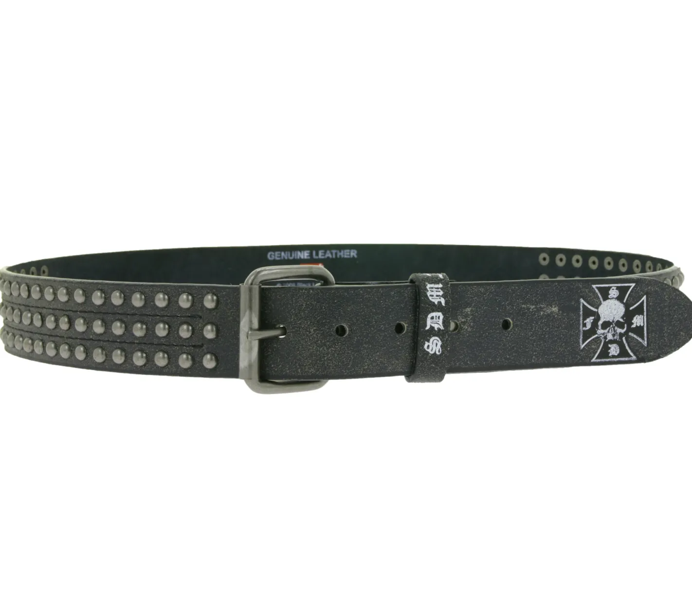 Black Labels Society Gürtel der Heavy-Metal-Band für Damen und Herren 100cm mit Nieten und Schriftzug Freizeit-Gürtel Schwarz/Weiß