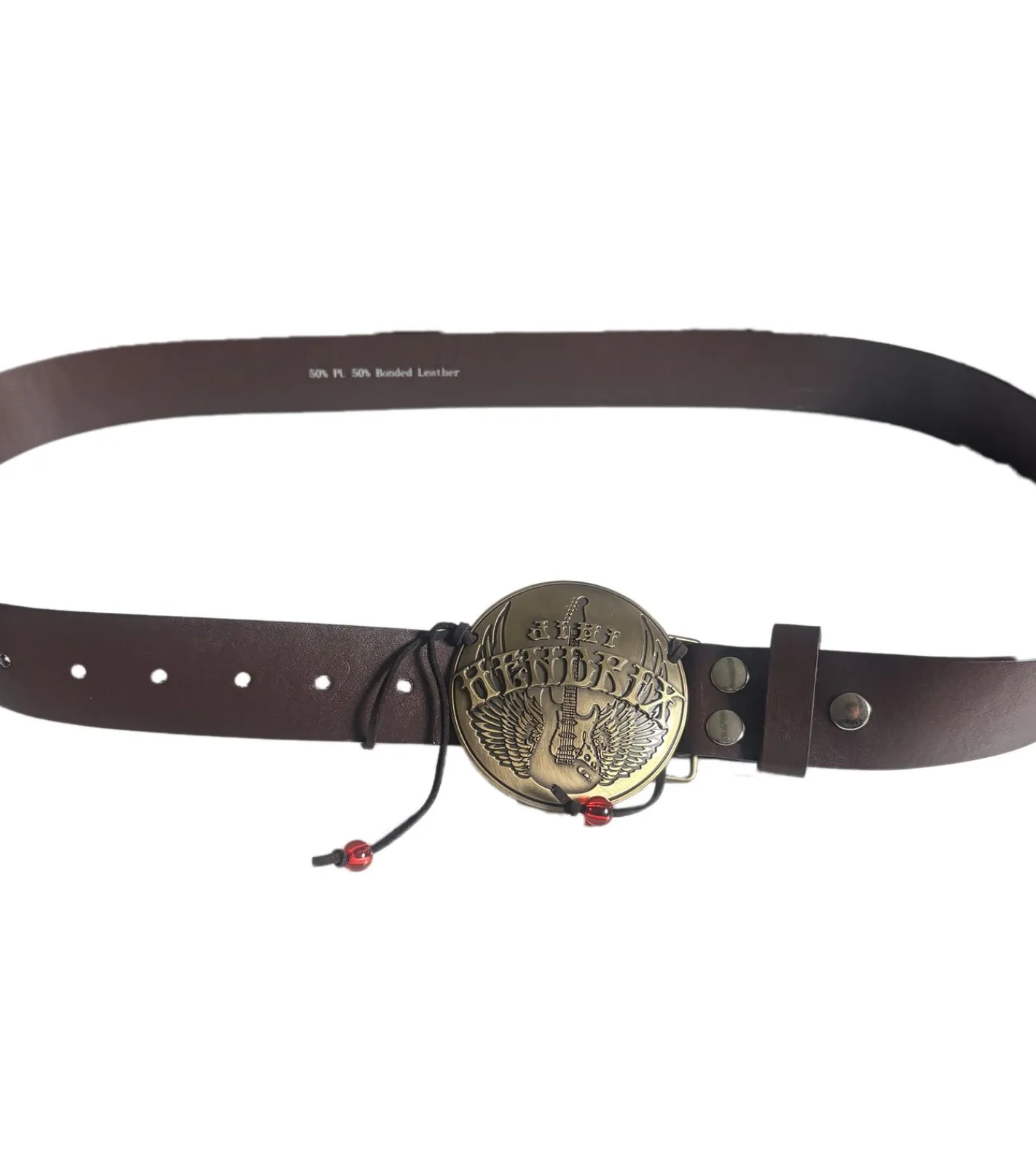 Jimi Hendrix Gürtel für Damen oder Herren stylischer Leder-Gürtel mit Logo-Schnalle Freizeit-Gürtel Braun