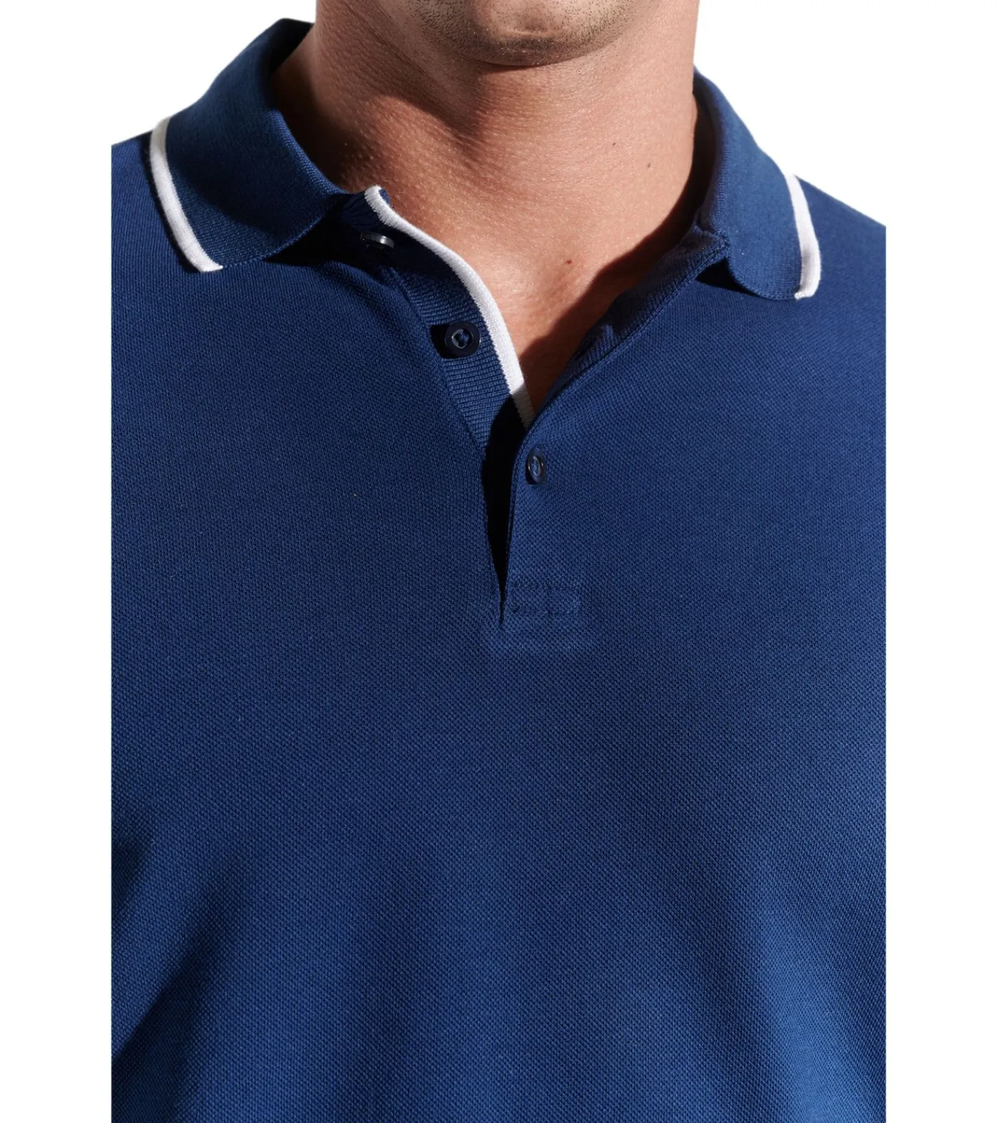 COURSE Herren Polo-Shirt Baumwoll-Shirt mit Kontrast-Kanten Kurzarm-Hemd 900620 Dunkelblau