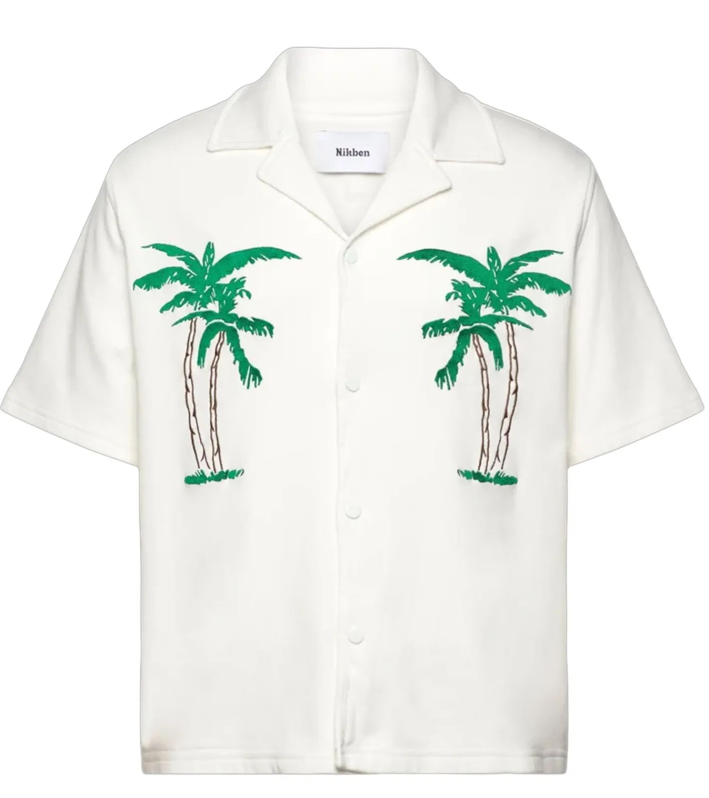 Nikben Long Beach Shirt Herren Viskose-Hemd Kurzarm-Hemd mit Palmen-Print Loose Fit 6371 Weiß