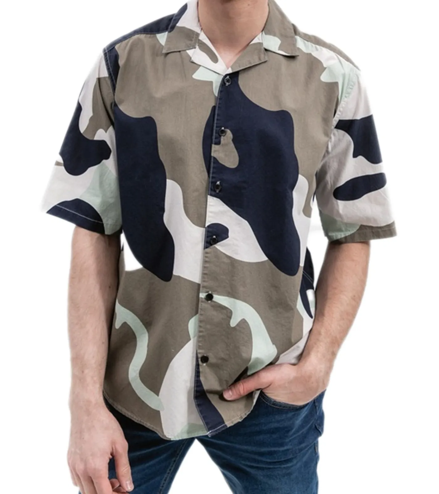 ONLY & SONS Herren Kurzarm-Hemd im Camouflage-Look Baumwoll-Hemd mit Knöpfen 22024495 Bunt