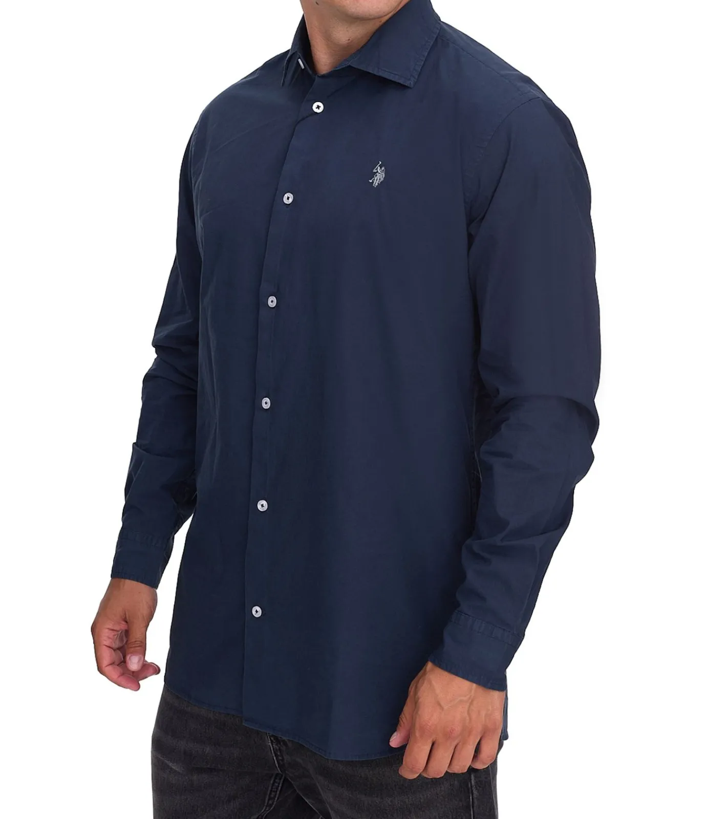 U.S. POLO ASSN. Herren Langarm Hemd Basic-Hemd Baumwoll-Hemd US41 104 052 002696 379 Blau/Weiß