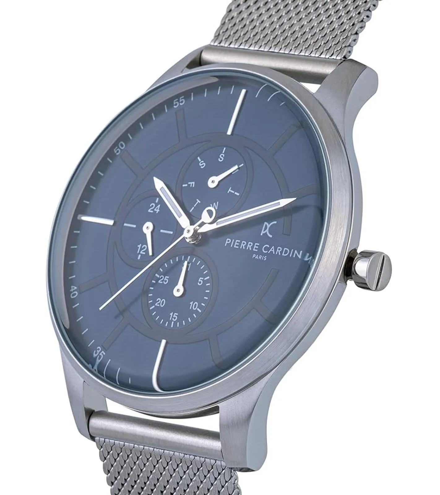 Pierre Cardin Herren Armband-Uhr mit Multi-Ziffernblatt analoge Quarz-Uhr mit Edelstahl-Armband 3ATM 43mm A.PC902731F121 Silber/Blau