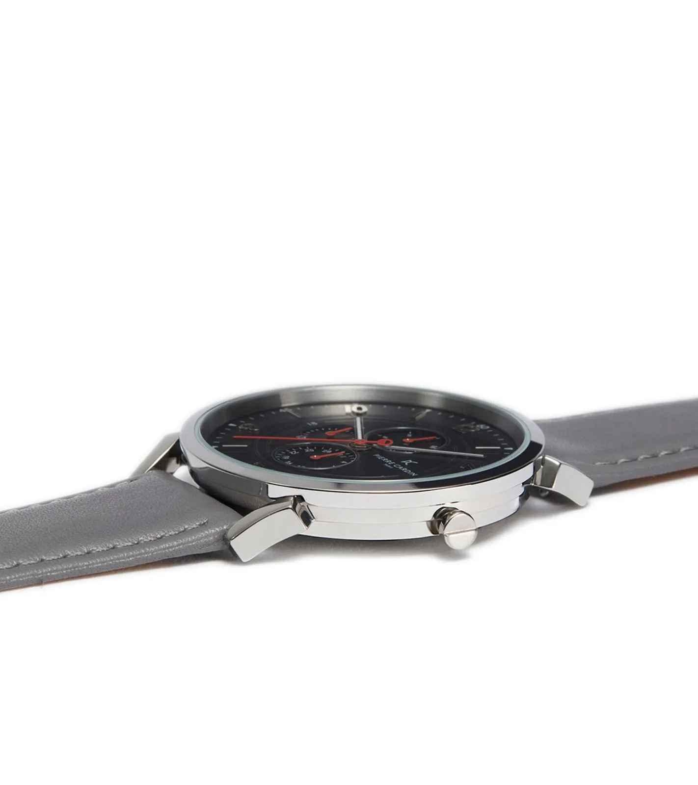 Pierre Cardin Herren Armband-Uhr mit Multi-Ziffernblatt analoge Quarz-Uhr mit Leder-Armband 3ATM 44mm CPI.2025 Grau/Silber